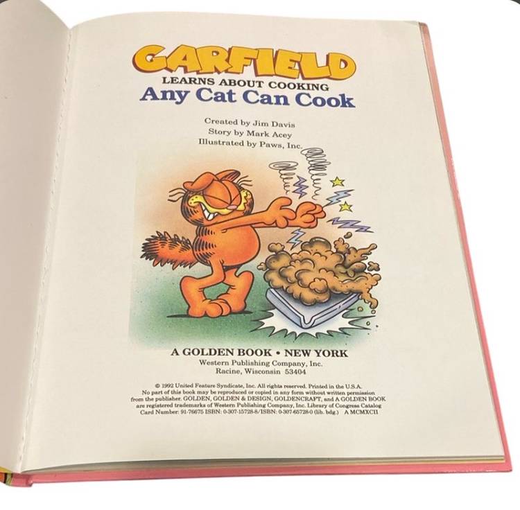 "Garfield Learns About Cooking" by Mark Acey is a vintage children's book published by Random House Children's Books in 1992. This comic book features the iconic character Garfield learning about cooking in a fun and entertaining way, and includes illustrations that makes it a great addition to any cat lover or young chef's bookshelf.