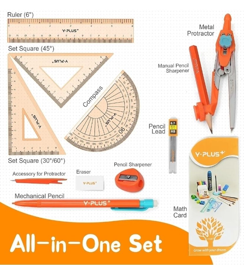 The YPLUS Geometry Set for Students is a comprehensive math protractor compass with rulers, making it an essential drafting kit for students. This set includes everything needed for precise measurements and layouts, with a compact design measuring 8.23x3.5x0.94 inches and weighing only 0.37 pounds. The vibrant orange color adds a pop of color to the set, while the model number MS140410 ensures easy identification and organization. This geometry set is perfect for students looking to enhance their math skills and create detailed drawings with accuracy and ease.