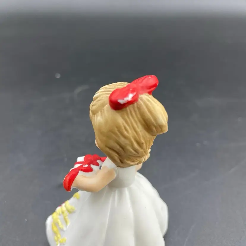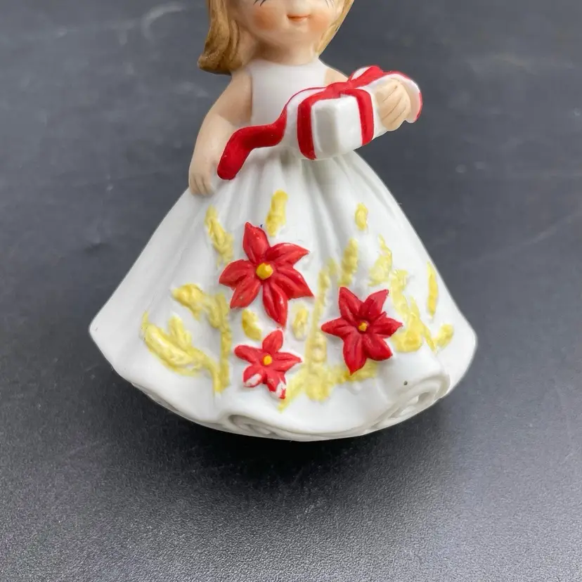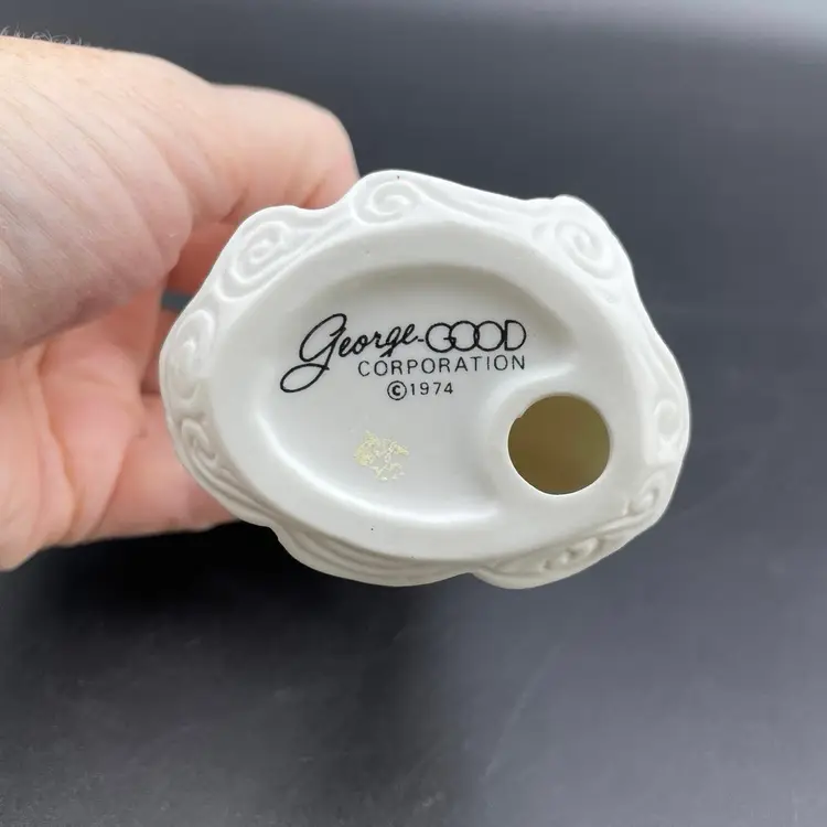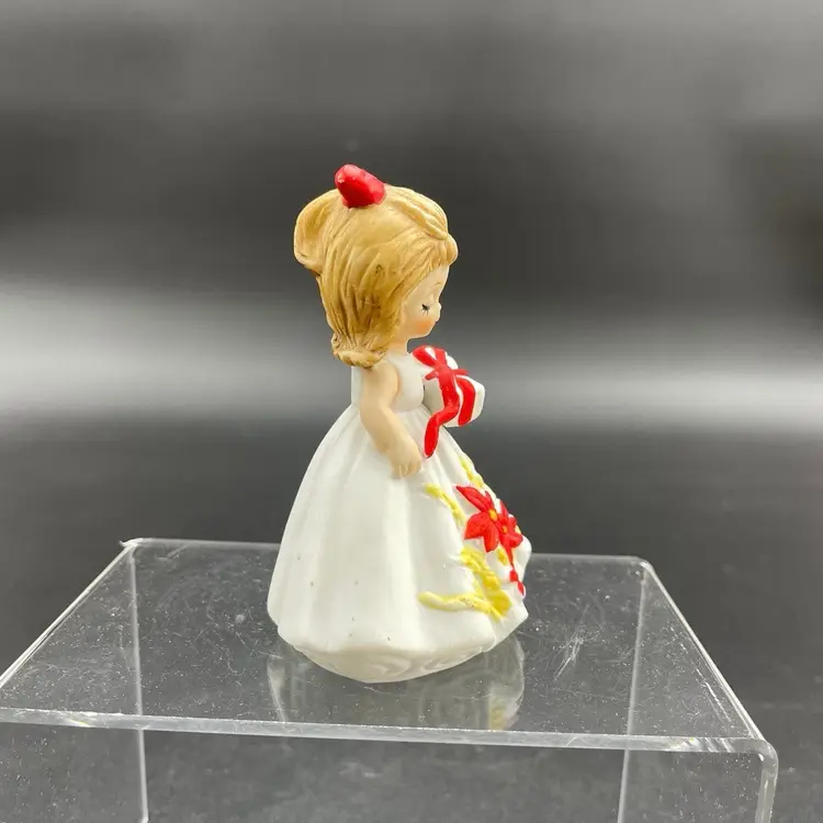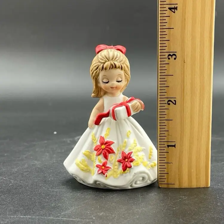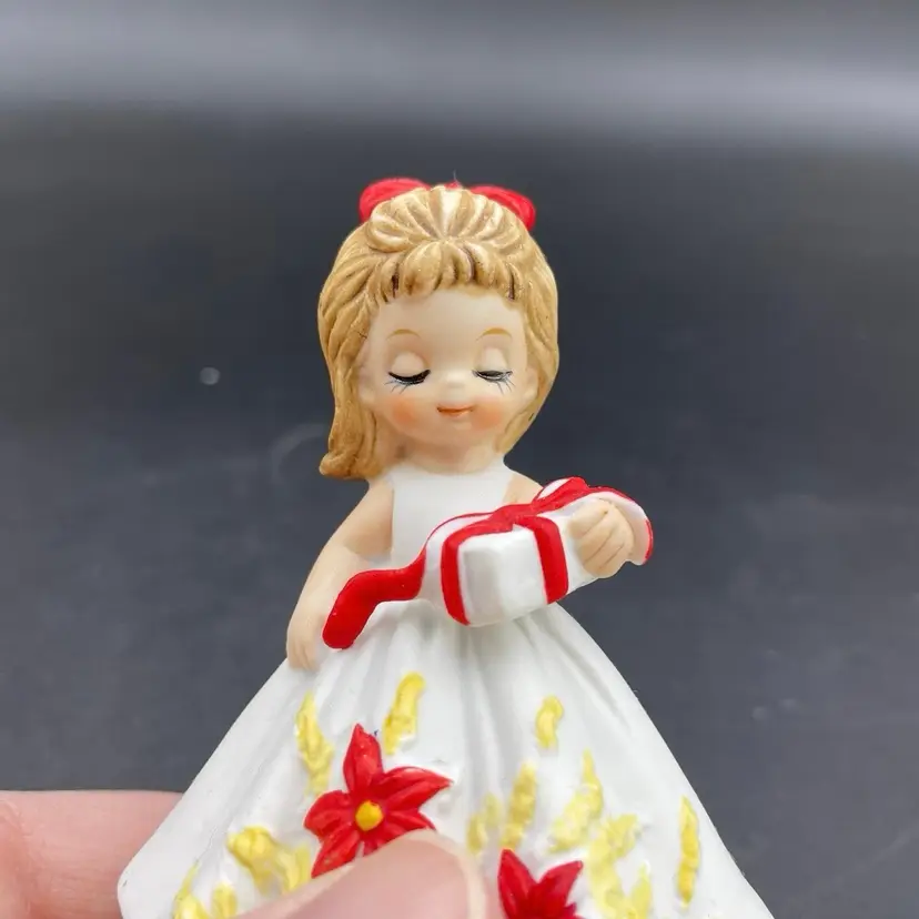 This is a vintage 1974 miniature George Good December Girl figurine. Measures approximately 3.5” tall. There is some missing paint on her bow and one of the flowers as shown in pictures. No chips or cracks.