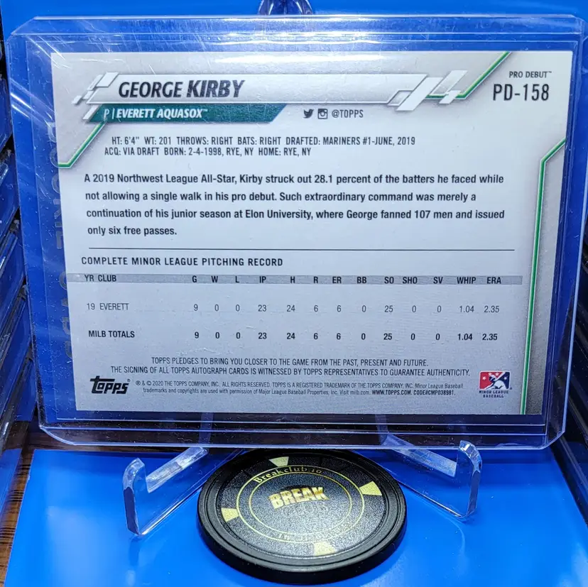 George Kirby 2020 Topps Pro Debut Auto #PD-158 Seattle Mariners