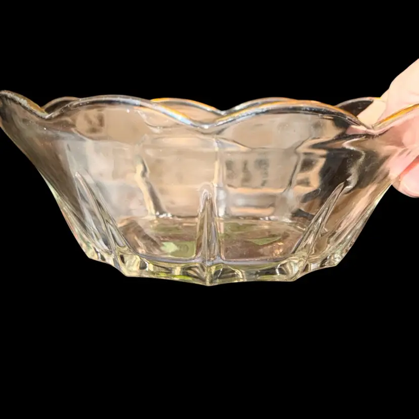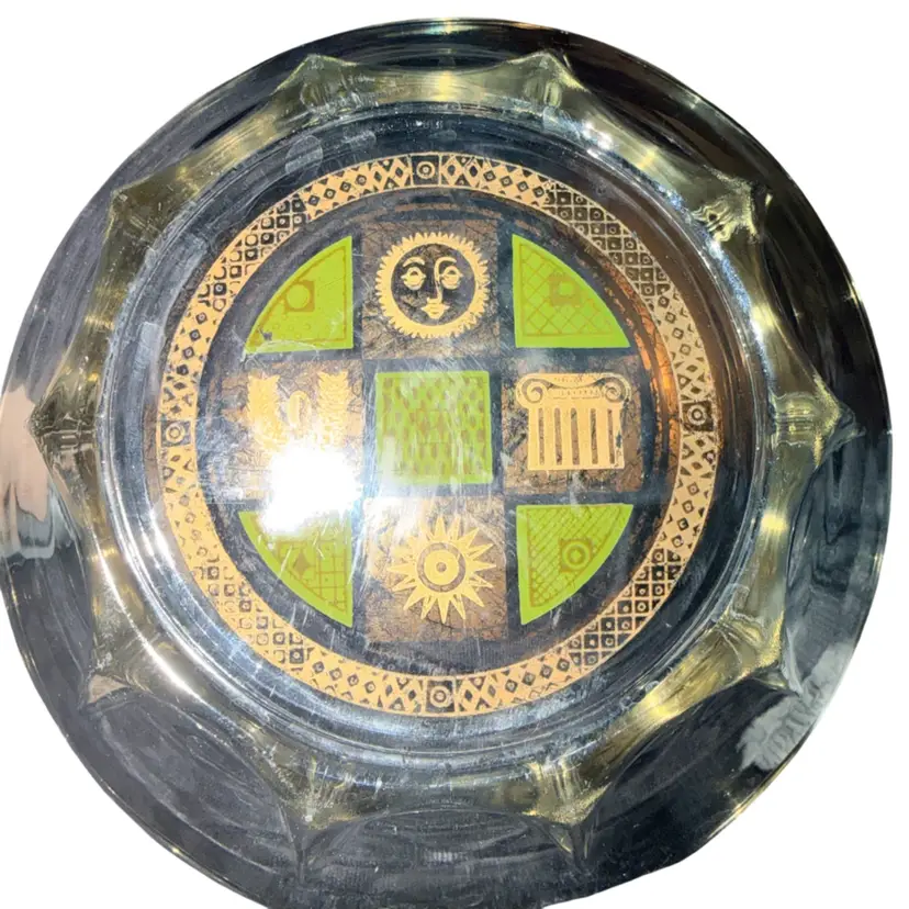 8 “ wide by 3 “ tall gold trim around the rim. Gold and olive color pattern on the bottom someone washed it . And was well loved no. Cracks or chips