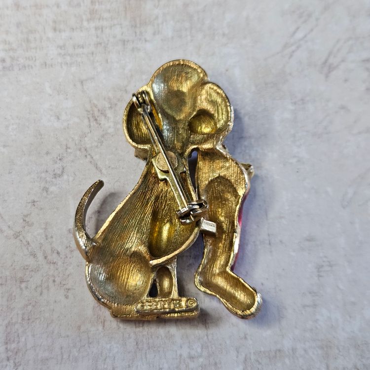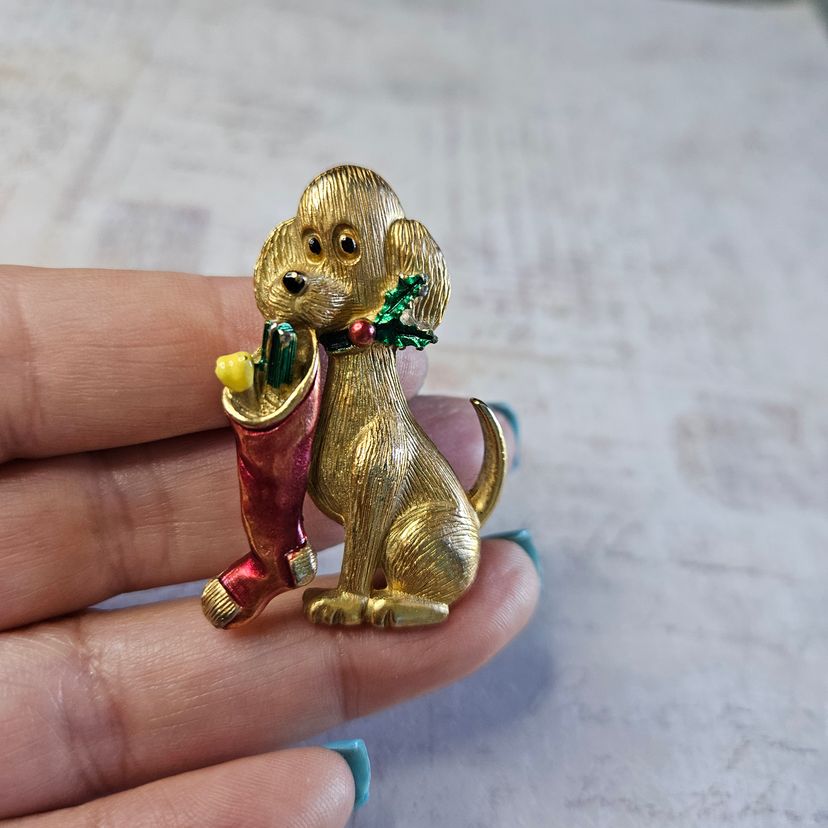 Deeper goldtone. Minor wear to present in stocking. Just under 2"