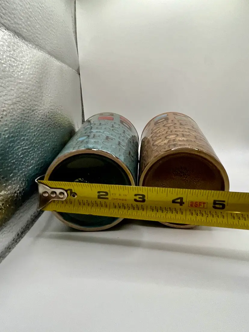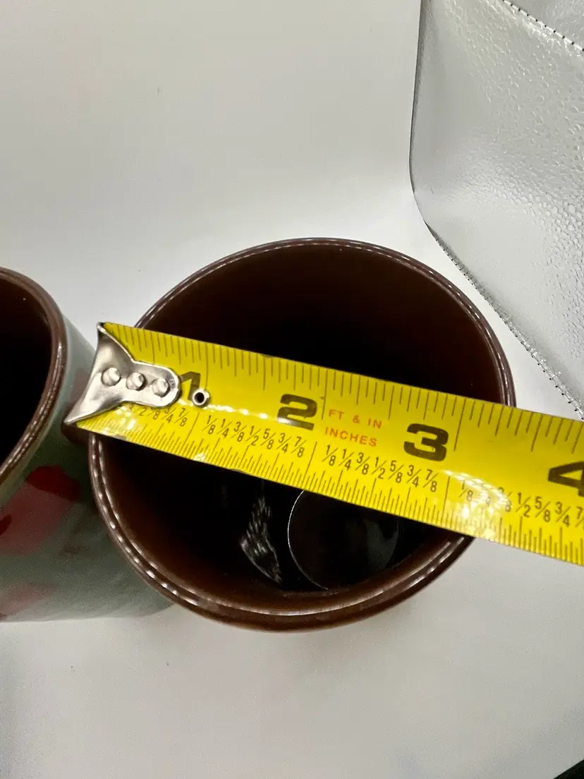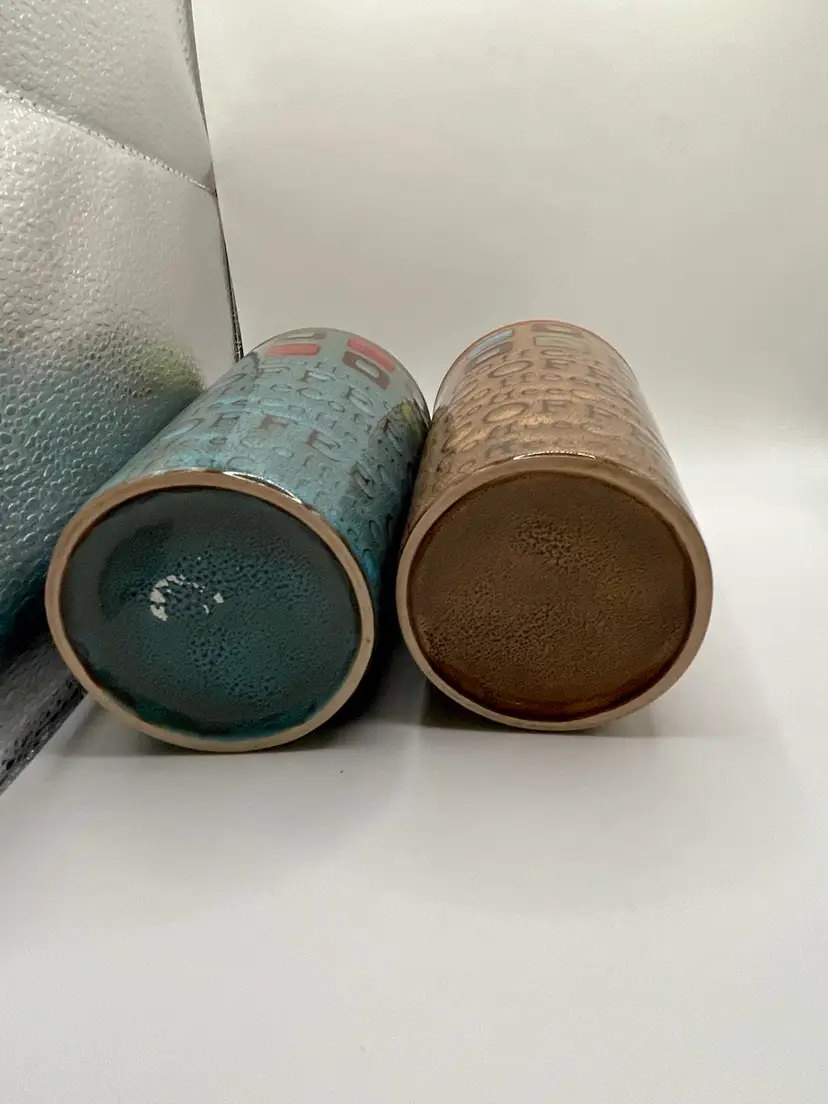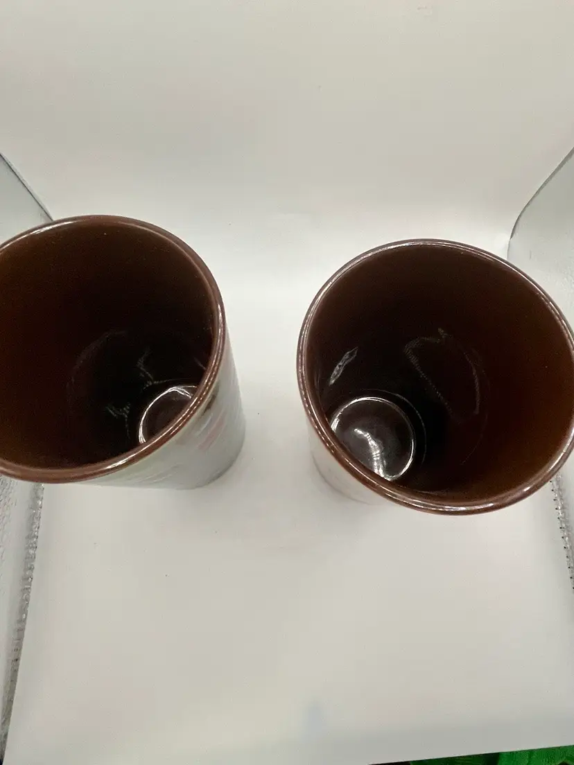 Gibson Ceramic Mr. Coffee 13 Oz Multi Color Tumbler Pair Brown Teal. No Condition Issue. 6”
