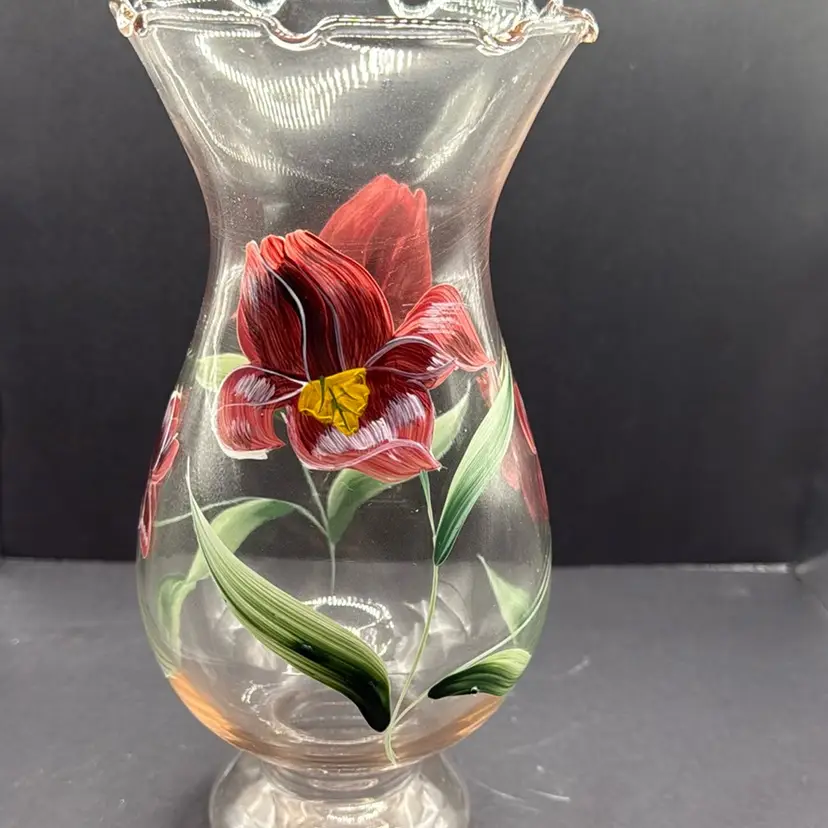 7 3/4 vase in original box Painted with Iris design