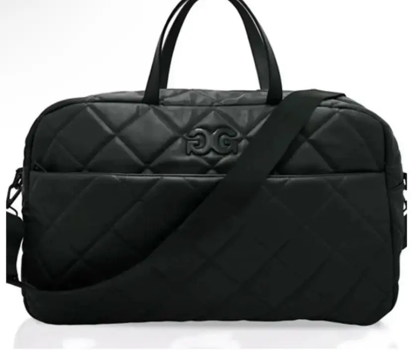 Keywords: Gilda Paris, weekender bag, quilted, black, unisex, travel, crossbody strap, compartments, stylish, versatile, shoulder strap, zipper closure, adult, slip strap, double handles.