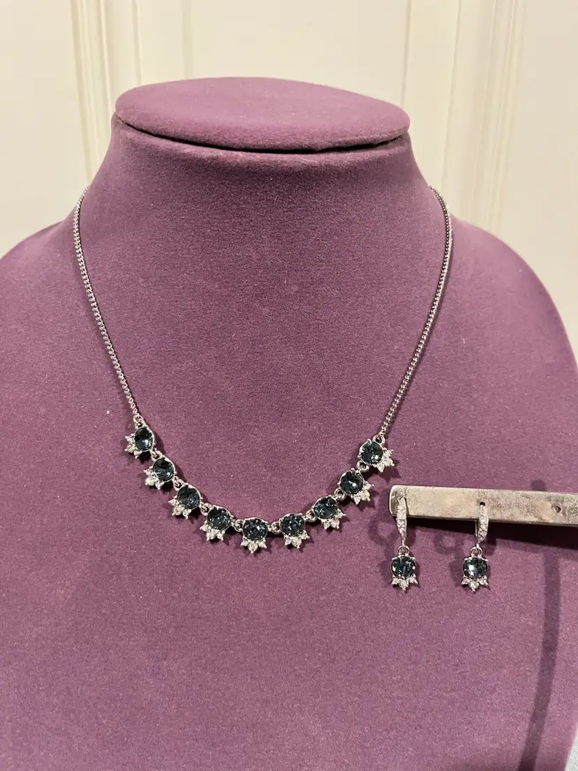 15. Givenchy Silver-tone Blue Crystal Necklace And Earring Set 20”