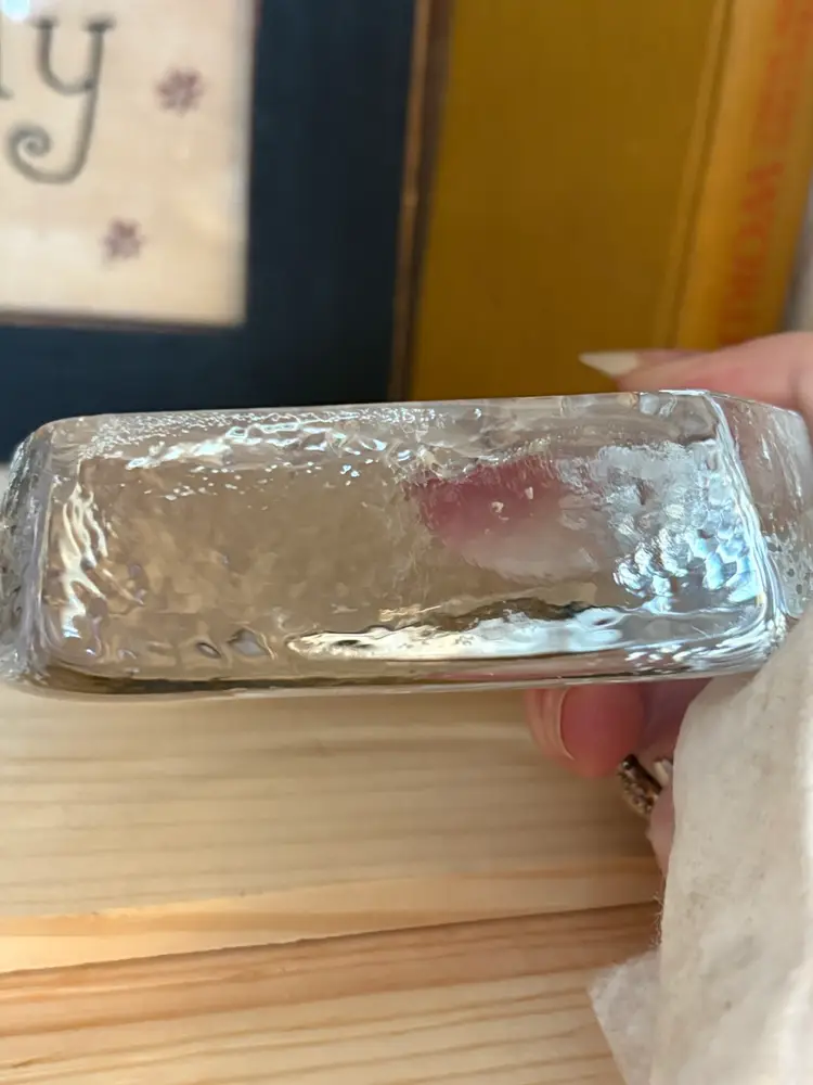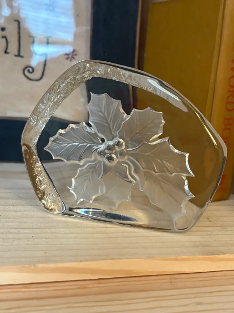 Poinsettia flower etched in glass About 3.5 x 4.5 Very clear but no signature Has a rough edge - see pictures - hard to see because of the texture on edges