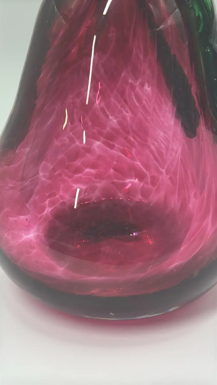 Glass Pear Signed Bob Allen 2004 hand blown Dark Pink and Green 6” tall