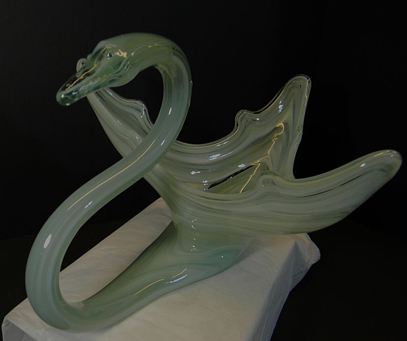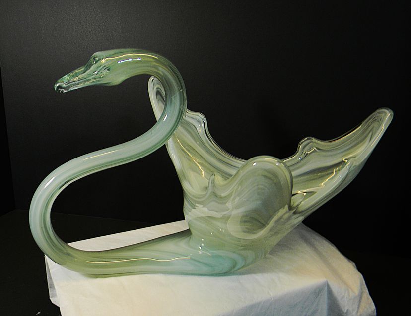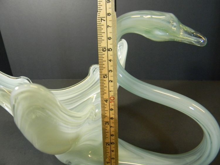 Art Glass Swan Hand Blown Pretty light green with some white no chips or cracks Measurements are in the photo used condition Please see all photos