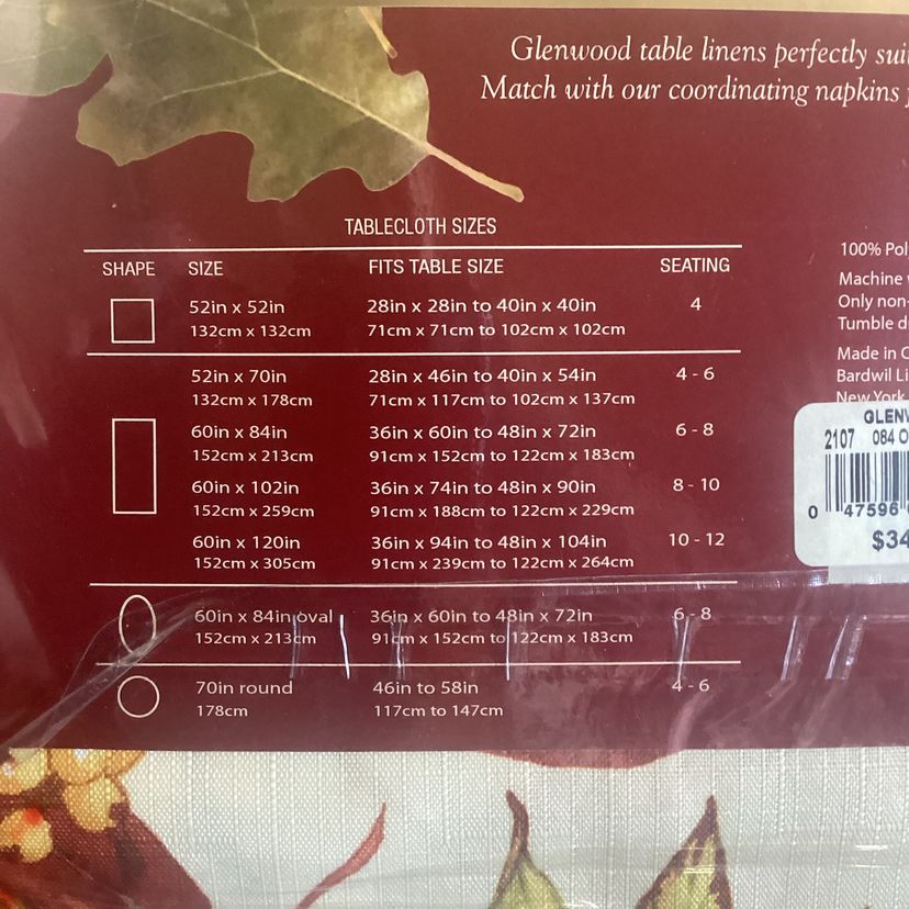 Brand: Glenwood Condition: New in original package Shape: Oval Size: 60” x 84” Pattern: Fall / Autumn Leaves Care: Easy care, machine washable cold, tumble dry low, use a cool iron Colors: Rich seasonal tones (reds, oranges, golds, and browns) No damage.