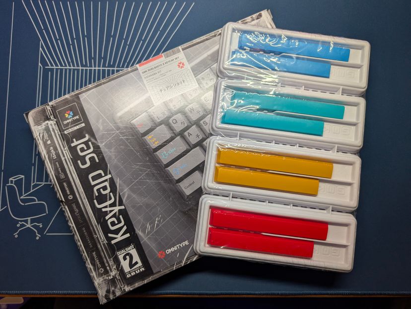 The GMK DualShot Katana Base Kit is open-box, but never used. The "Aesthetic" Accent Spacebar Kit is still sealed.