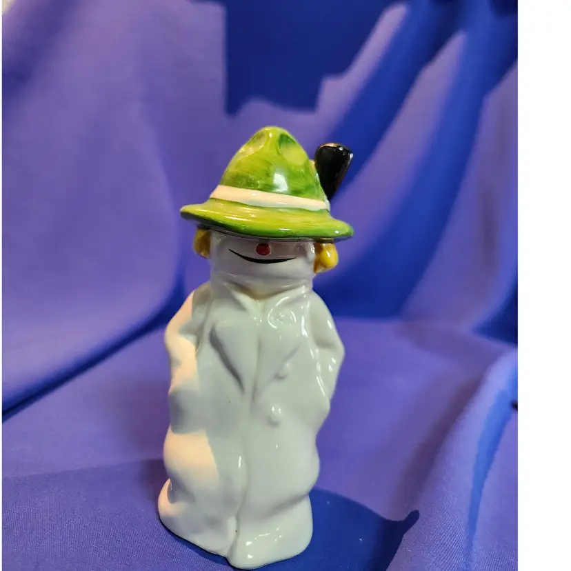 Goebel Whoosit West Germany Clown in in white coat and green hat From Snow Kids collection Measures 4 inches tall In excellent condition - no chips or cracks