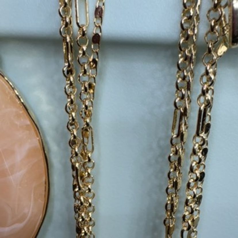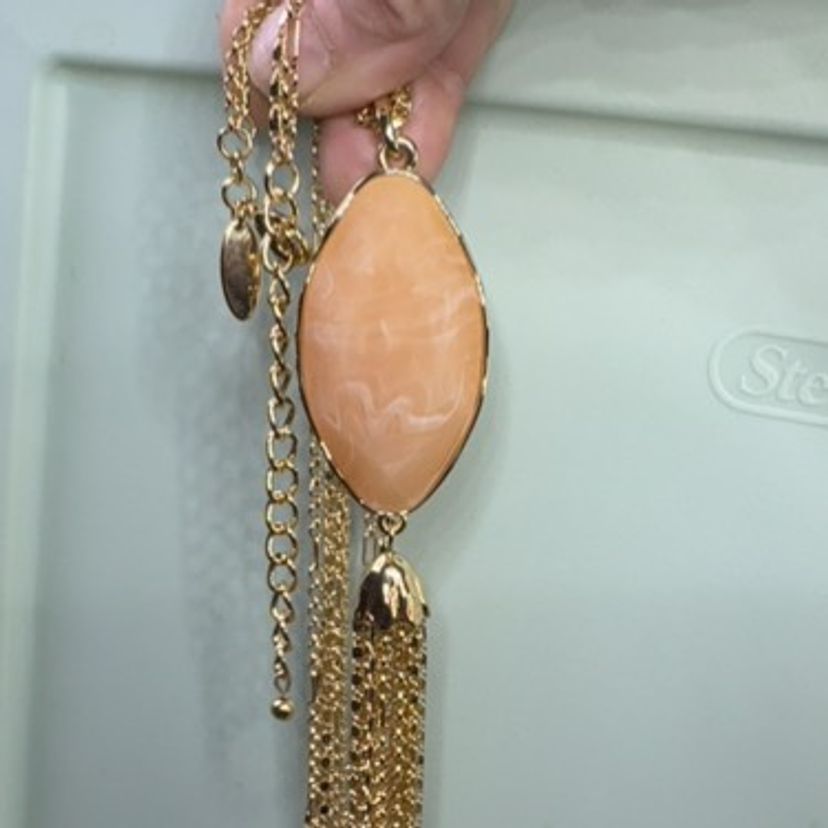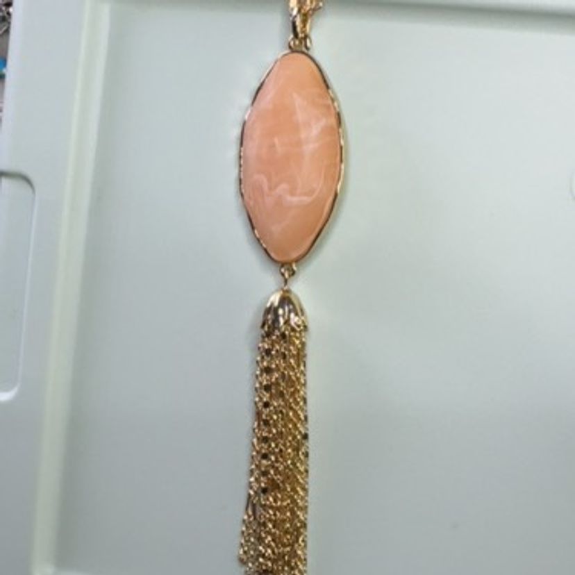 Gold Tone 30” Double Chain with 5” Faceted Stone Fringe Pendant