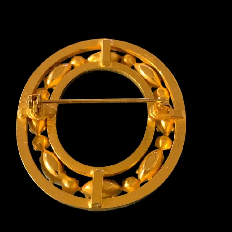 Gold Tone Oval Shape Pronged Set White Beads With Pin Stop