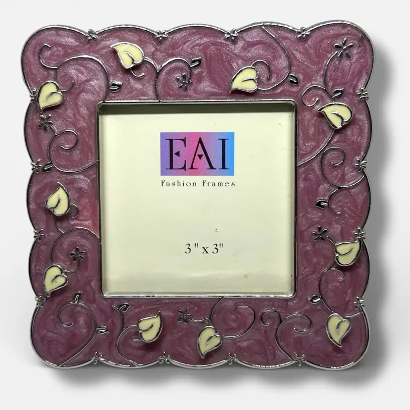 Gorgeous Enamel Metal Picture Frame. Easel Stand 5 X 5”.