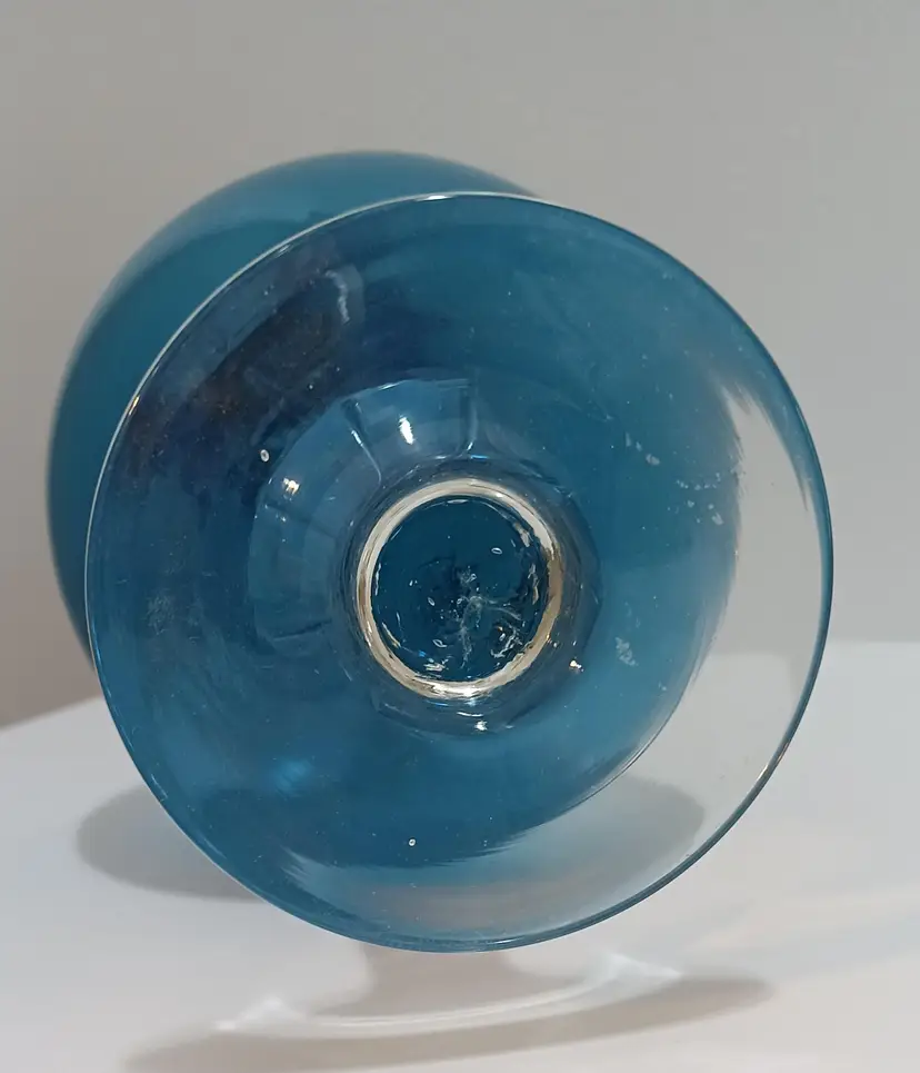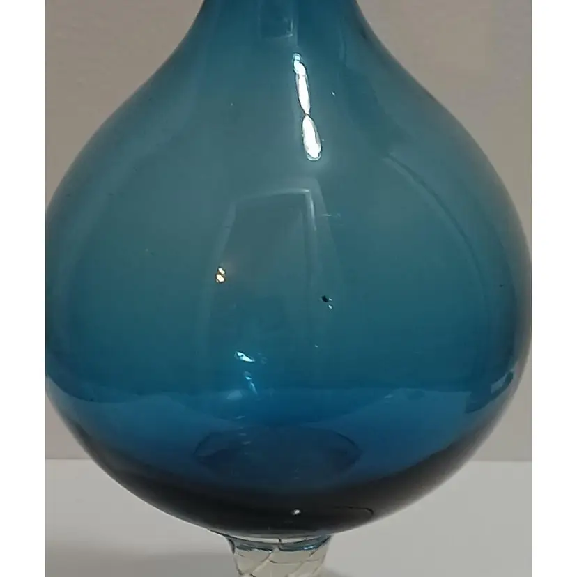 Gorgeous Vintage MCM Blue Empoli Decanter Set With 5 Glasses from the 1960's; Elegantly crafted, great condition; decanter is 14" tall x 5" w; glasses are 4" tall x 2 " w. No chips or cracks. There is an inclusion on the decanter and one of the glasses; does not detract from this beautiful set.