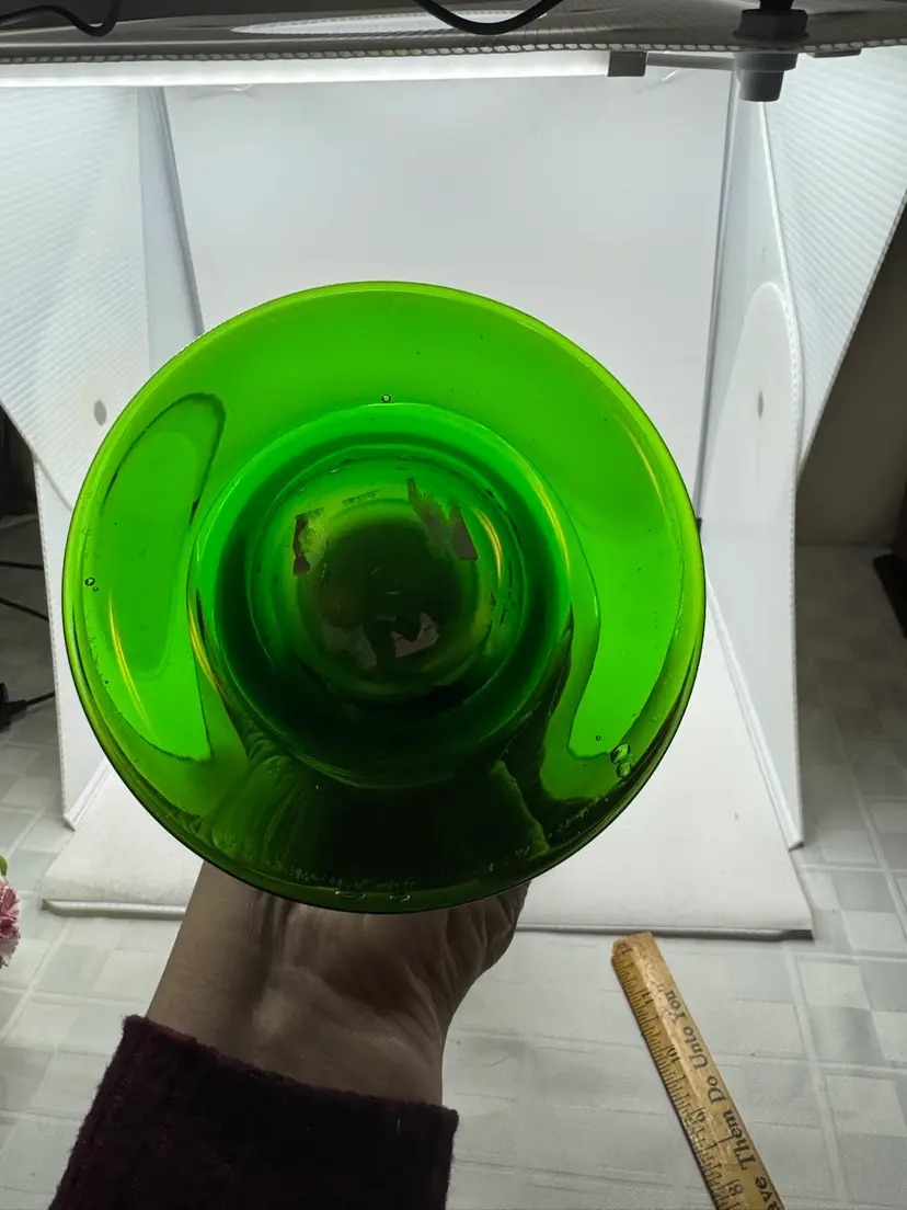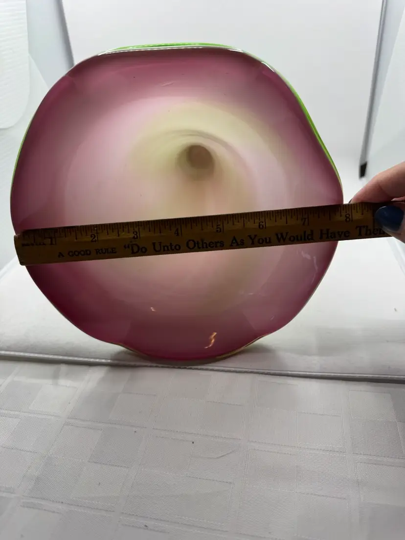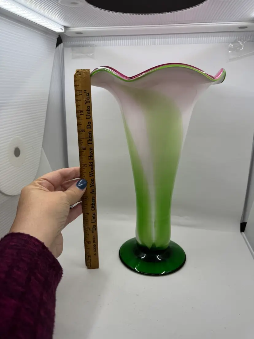 Green And Pink Vase, 12” Tall, 8” Wide At Top, Ships Alone