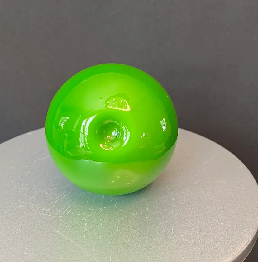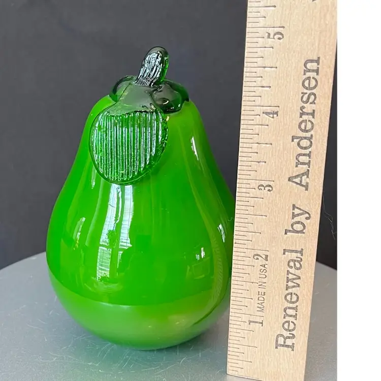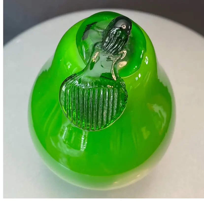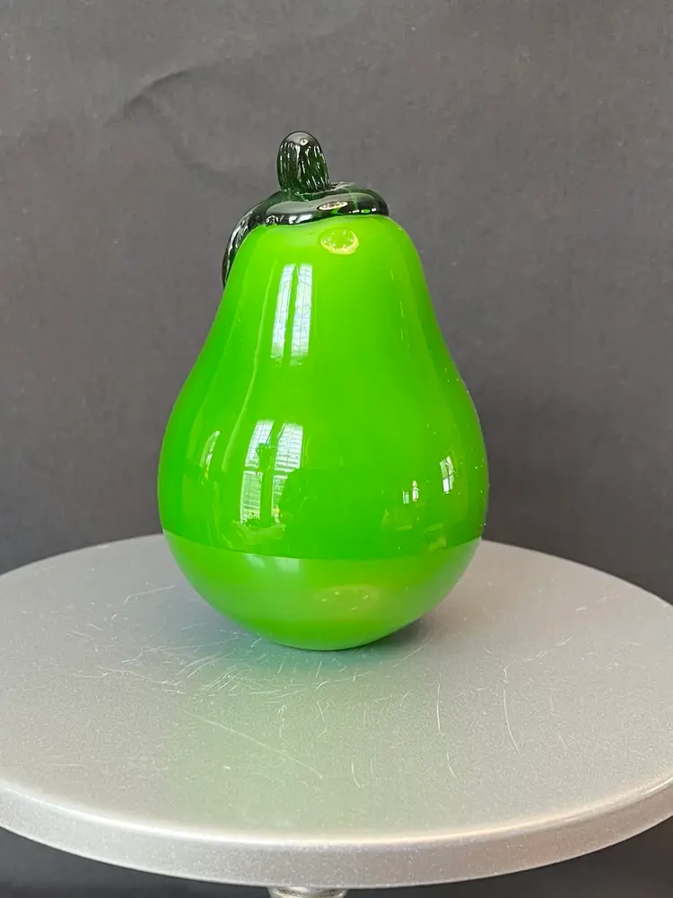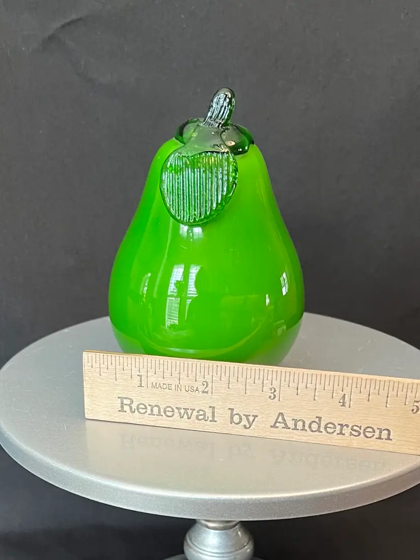 #231 Green Glass hand blown Pear. Measures 4.75” x 2.75”. In great condition
