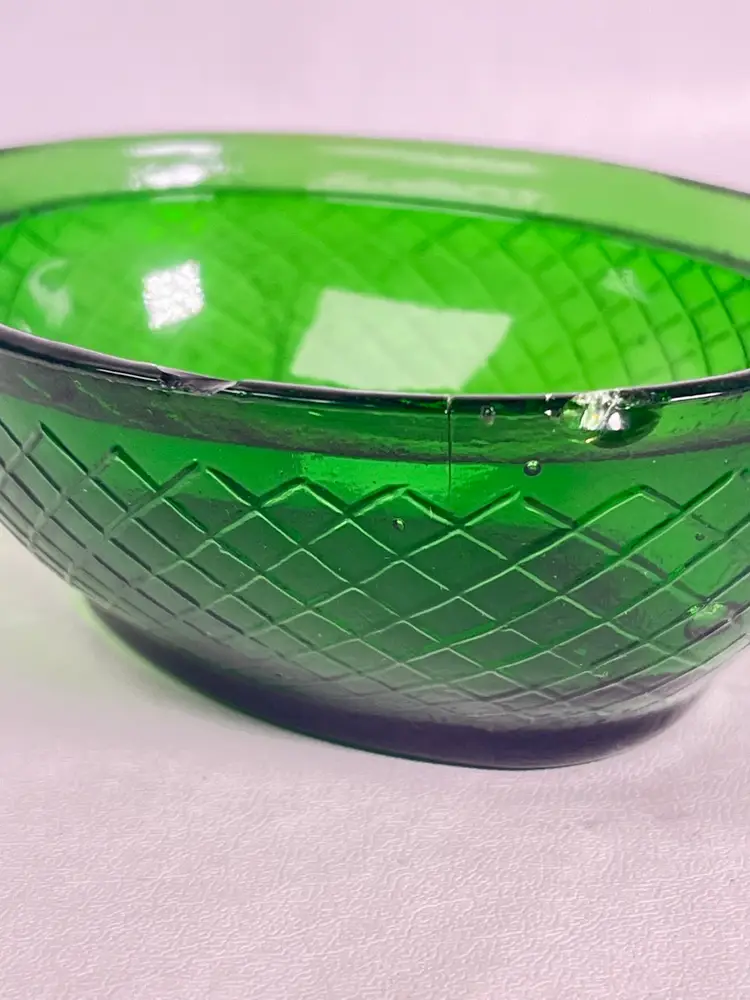 This poor little guy has some damage, but is still a great display piece! Most of the damage is on the bottom, with some chips and small cracks around the edge. The top is in good shape, other than a small spot of discoloration on the beak.