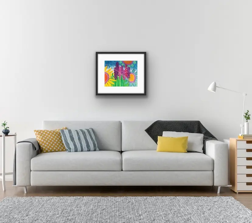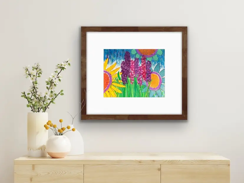 • 14” x 11” acrylic and mixed media original painting on Bristol Board Paper, sealed and protected with two layers of archival varnish. • Frame & mat shown not included. • Ships flat; ready for you to take to your local framer to customize/coordinate with the decor in your space. •All original paintings come with a signed Certificate of Authenticity.