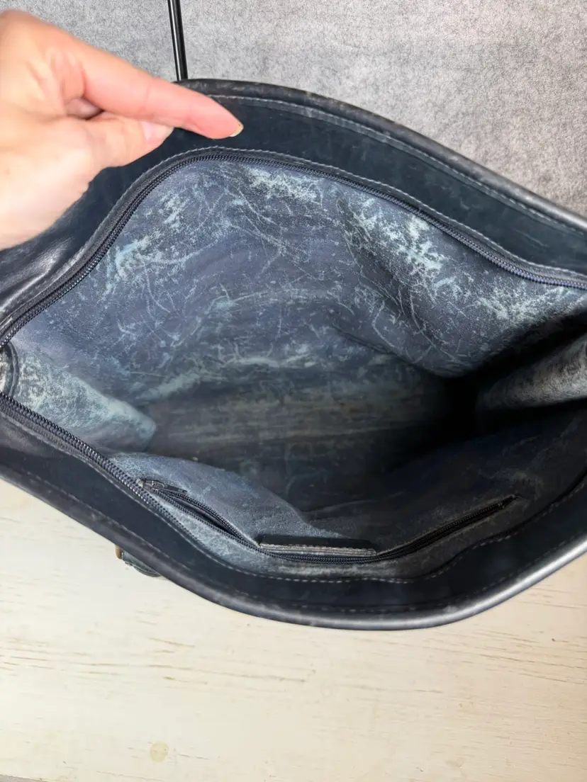 Condition (Please Read Carefully): • This bag shows visible wear consistent with vintage use • Interior lining has significant discoloration and wear (see photos) • Leather handles and trim show surface wear, scuffing, and edge wear • Corners show wear • Hardware shows wear and patina • Zipper functions properly