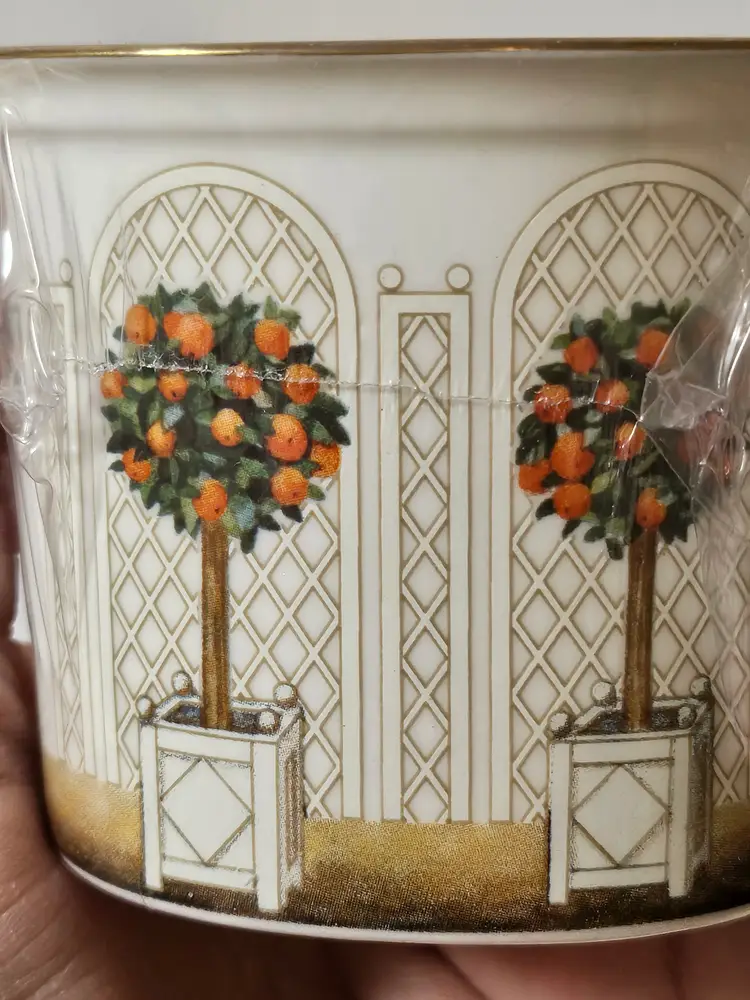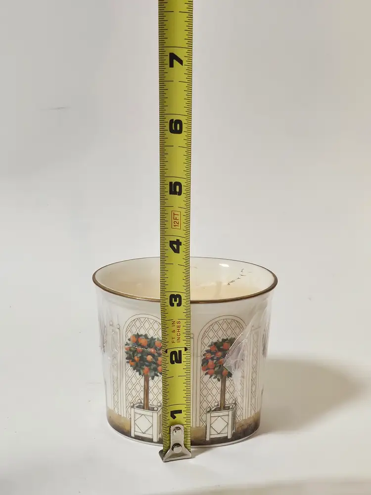 The Halcyon Days Ceramic Decorative Candle Holder is a unique and stylish piece, perfect for all occasions. Made in the United Kingdom, this original candle holder features a beautifully painted orange tree topiary design on a ceramic base. The oval shape and British style make it a charming addition to any home decor, adding a touch of elegance and sophistication to any room.