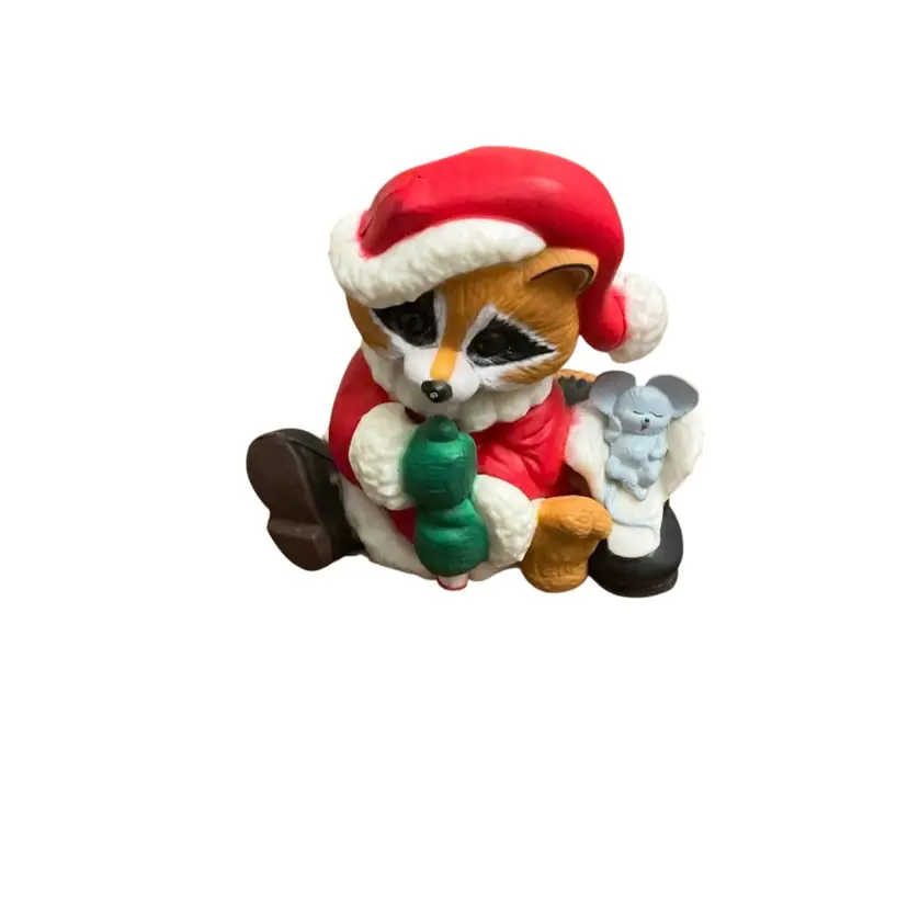 Cute light weight stocking hanger. Note the candy cane that holds the stocking is broken . So it now becomes a cute little shelf sitter. And of course the raccoon is the NikNax mascot. Pricing reflects the damage.