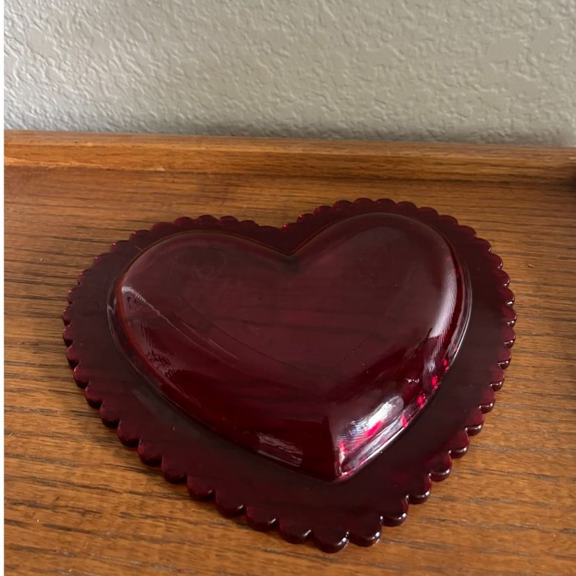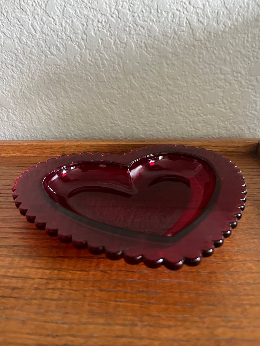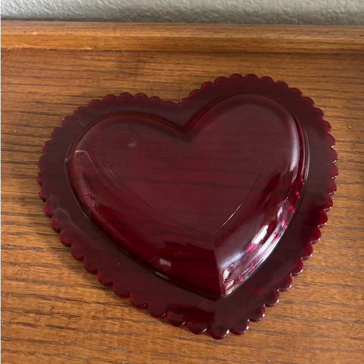 This beautiful glass heart dish with scalloped edge is in excellent condition with no chips or cracks.