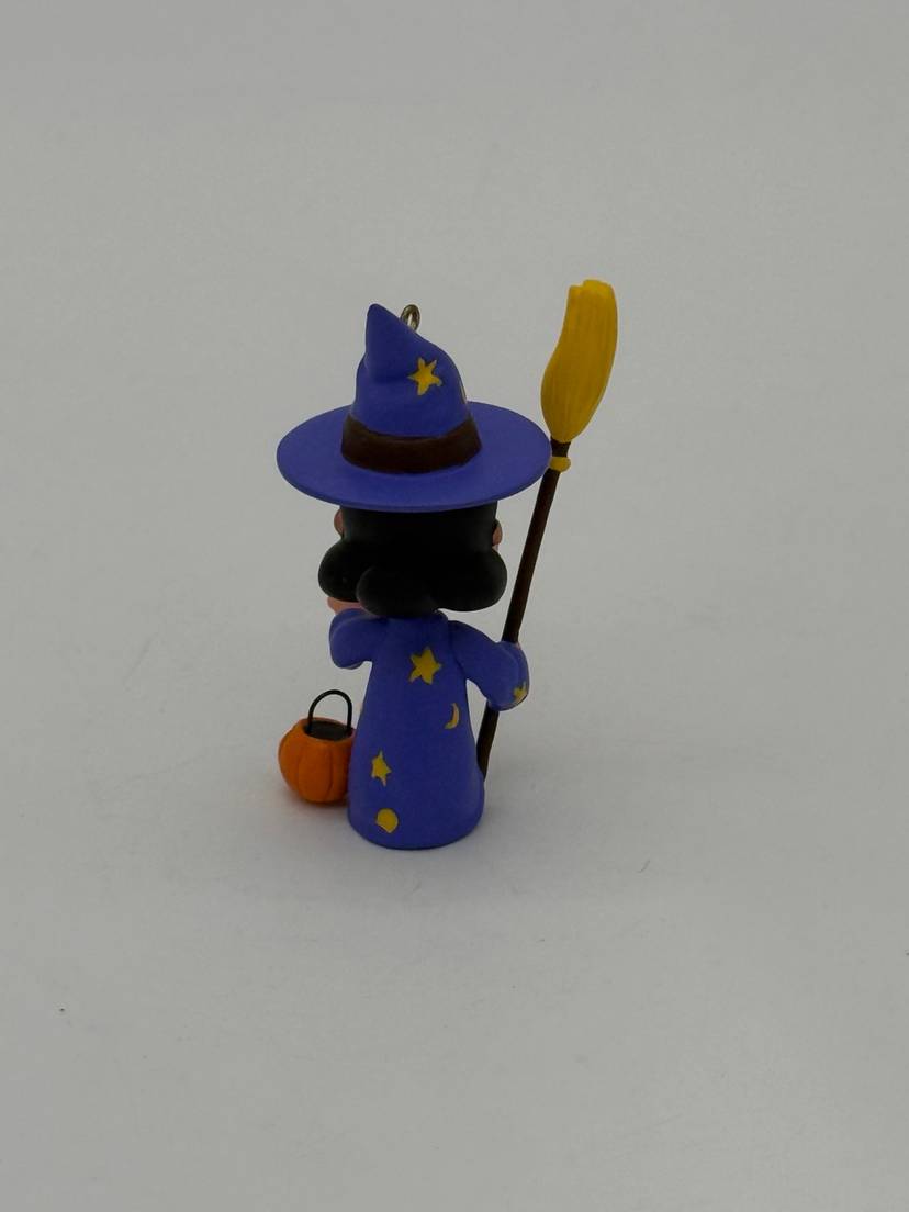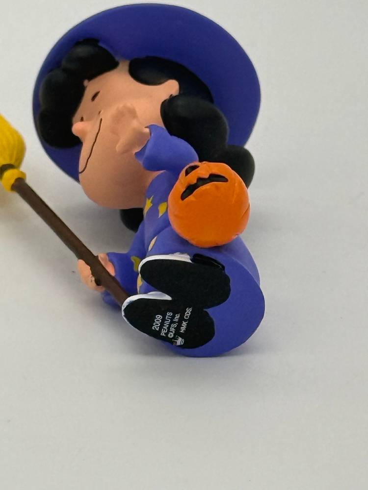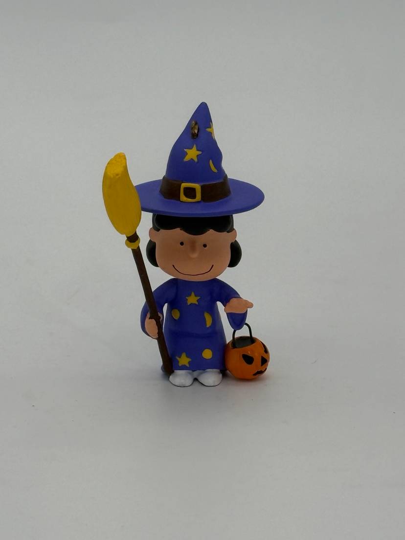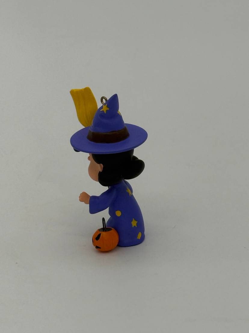 The Hallmark Ornament 2009 Bewitching Lucy is a small, hanging ornament featuring a witch-themed design with a broom and jack-o-lantern. This original, artist-designed piece is part of the Peanuts Halloween collection and is perfect for adding a festive touch to any holiday decor. Made from mixed materials and weighing 1.7 ounces, this multicolored ornament is themed around the Bewitching Lucy character from The Peanuts Gang, making it a delightful addition to any seasonal or cartoon-themed display.