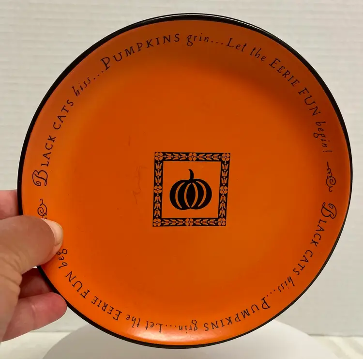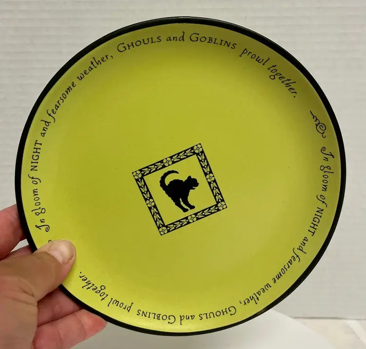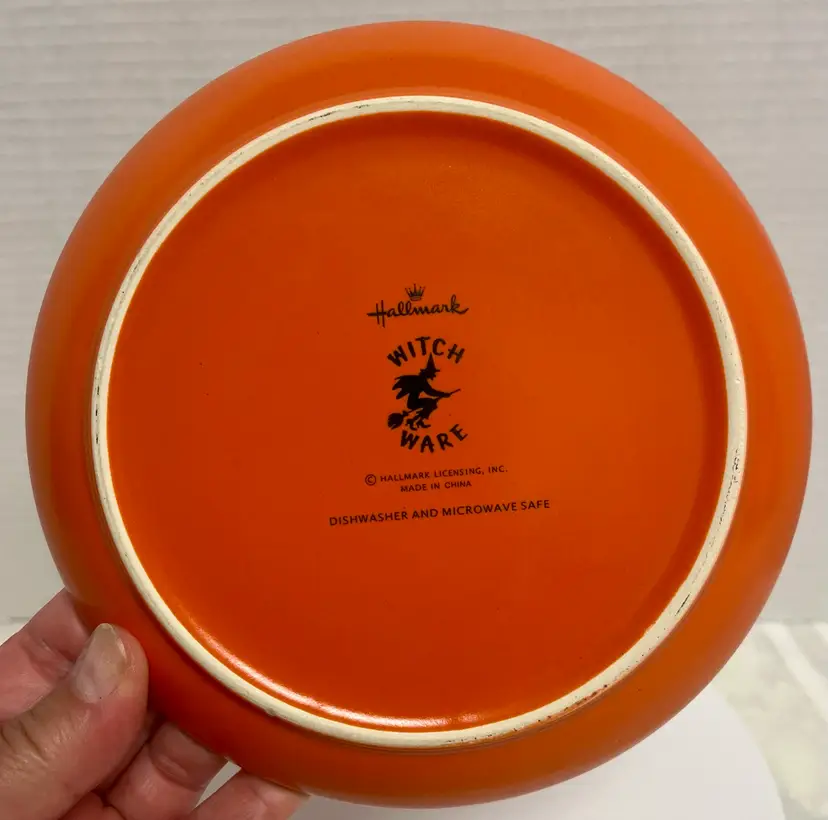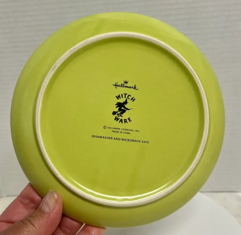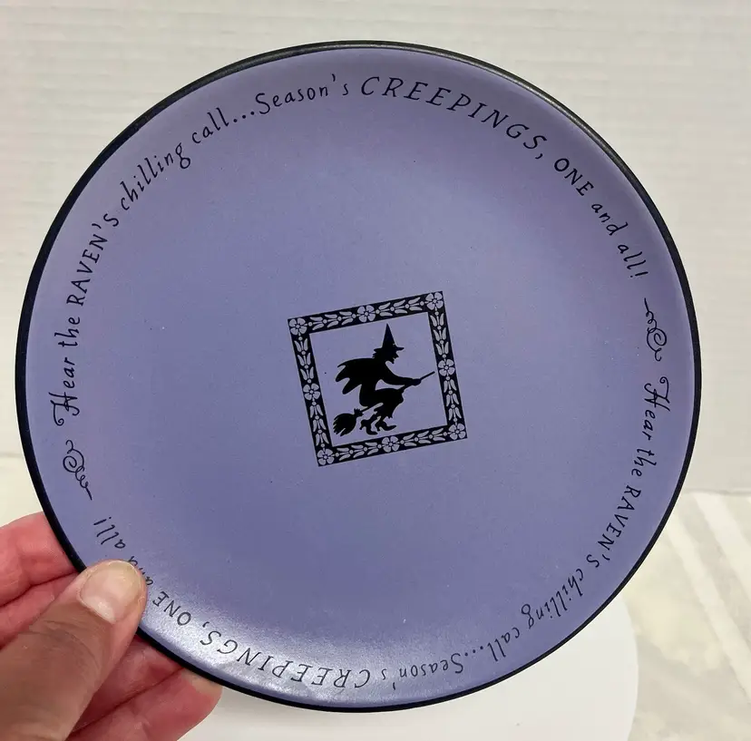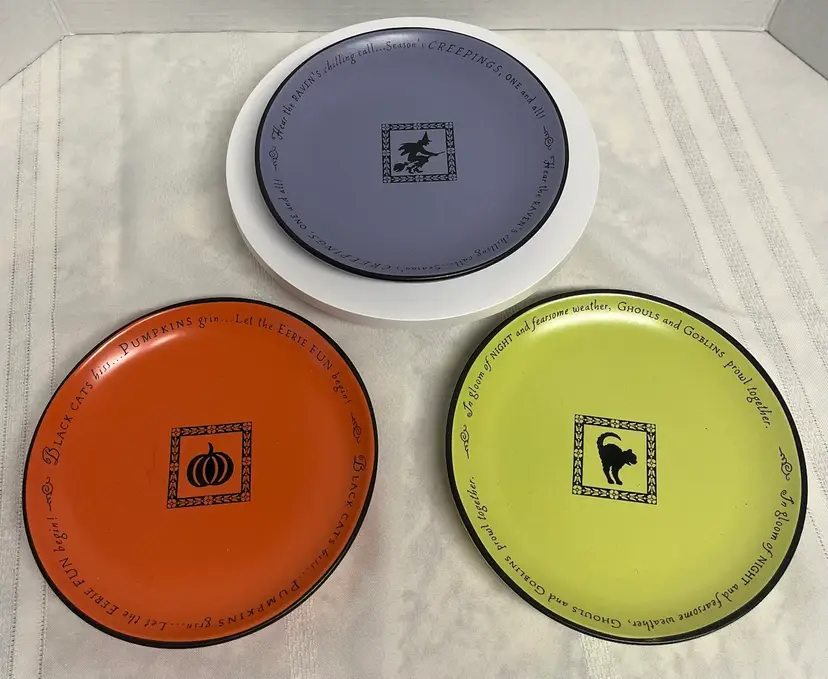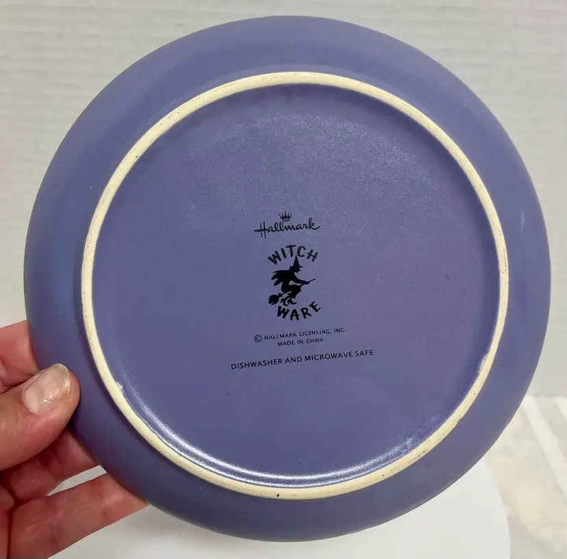 Retired Hallmark Witch Ware Halloween 7”Plates Purple Witch Green Black Cat Orange Pumpkin, set of 3. Minimal surface wear or scratches. No chips or cracks.