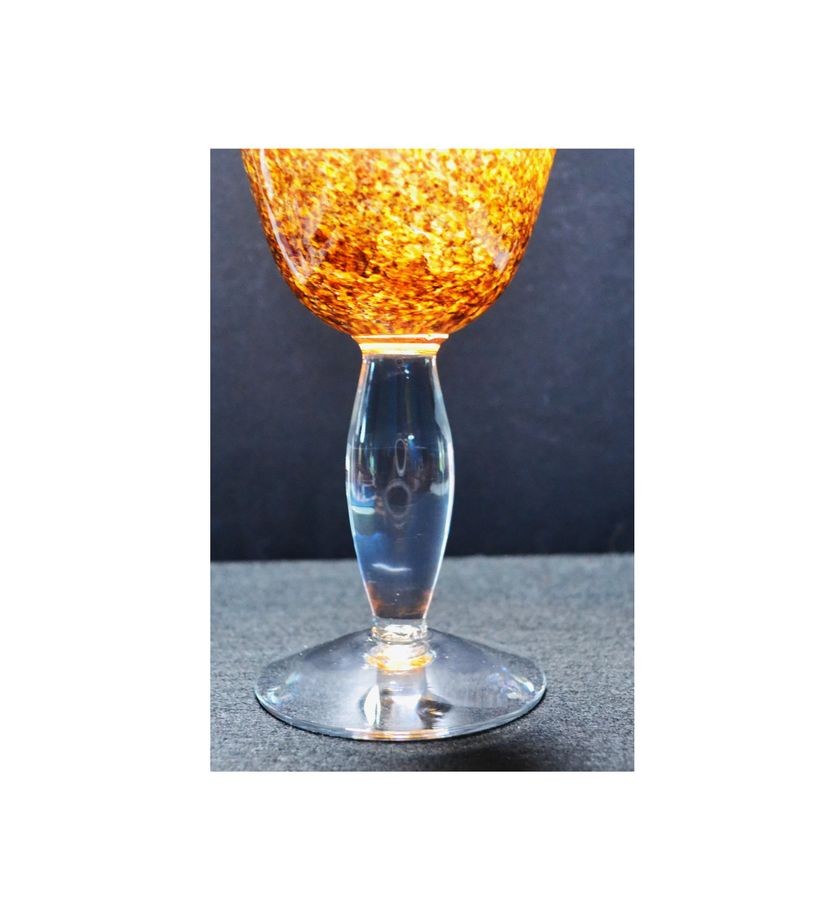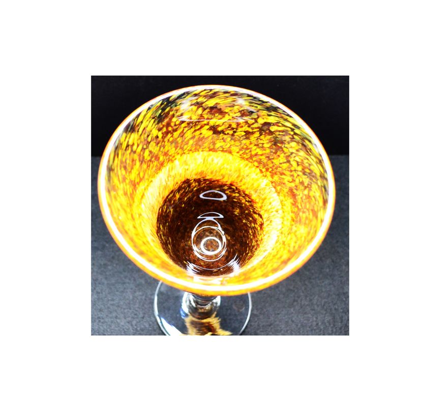 Add a burst of color and craftsmanship to your dining table with this stunning pair of hand-blown art glass goblets. Each goblet glows with molten hues of orange, red, and golden yellow—reminiscent of firelight and autumn sunsets.