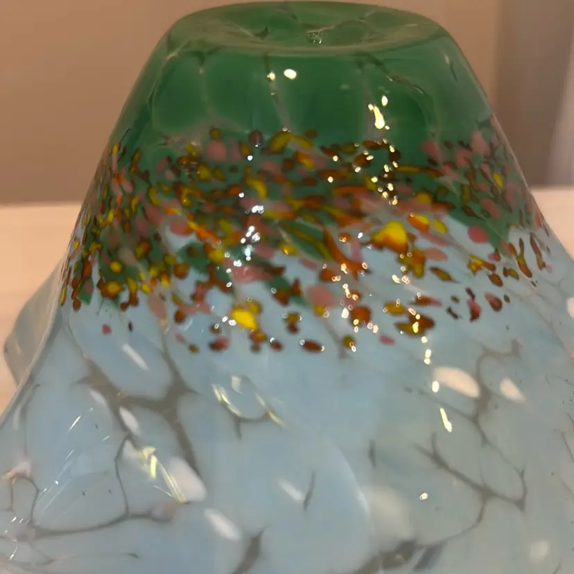Amazing colors on this hand blown art glass bowl. No chips or cracks. Measures 3 inches tall by 5 1/2 inches across. A great gift for glass collectors, or anyone who likes unique bowls.