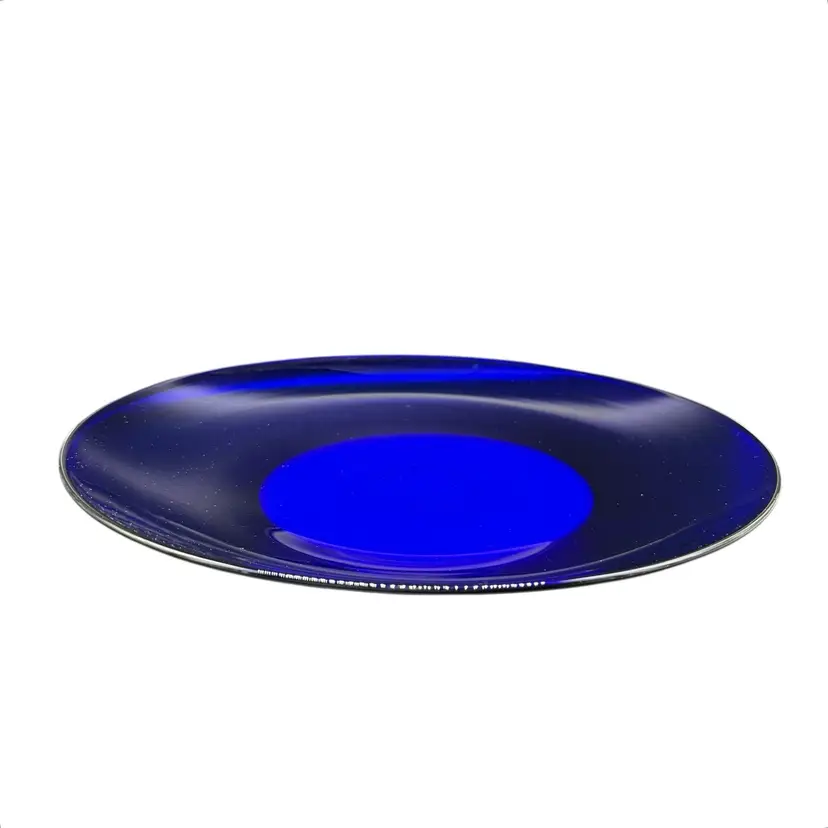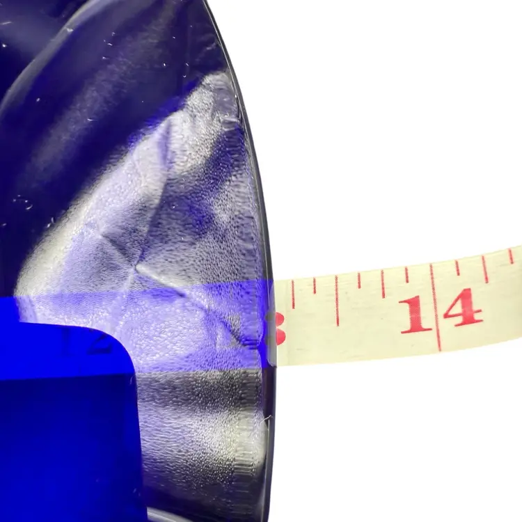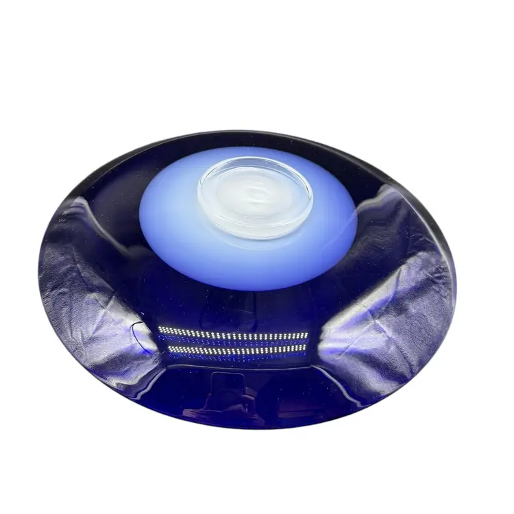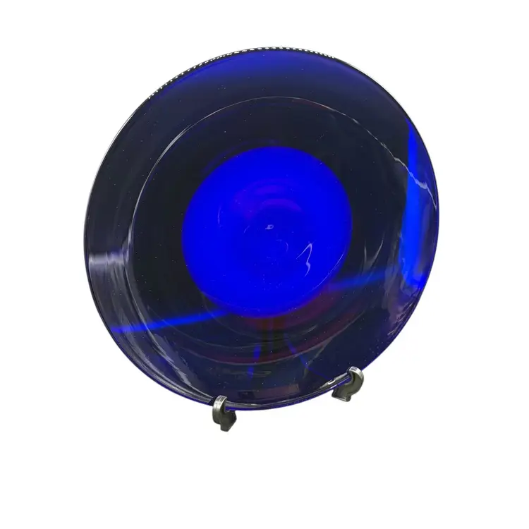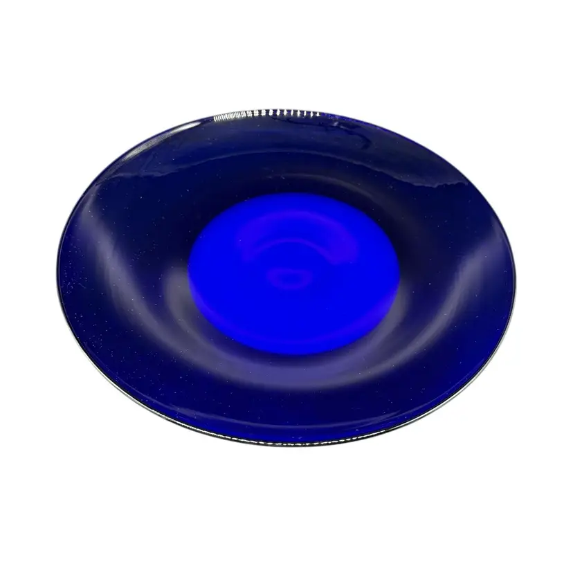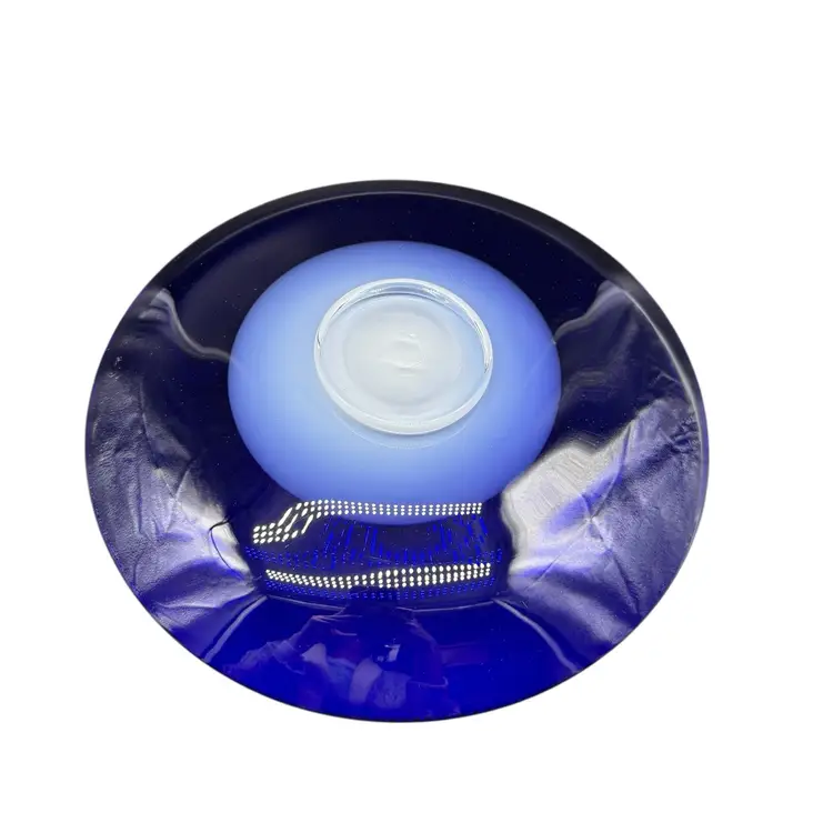 This hand-blown cobalt blue art glass centerpiece console bowl is a stunning piece of contemporary decor. The solid round bowl features a smooth design with a pontil mark at the bottom, showcasing the artistry of hand-blown glass. Made with a glossy finish in a large size, this handmade bowl is perfect for all occasions and can add a touch of elegance to any space. The vibrant cobalt blue color and artistic design make it a unique and decorative addition to any home.