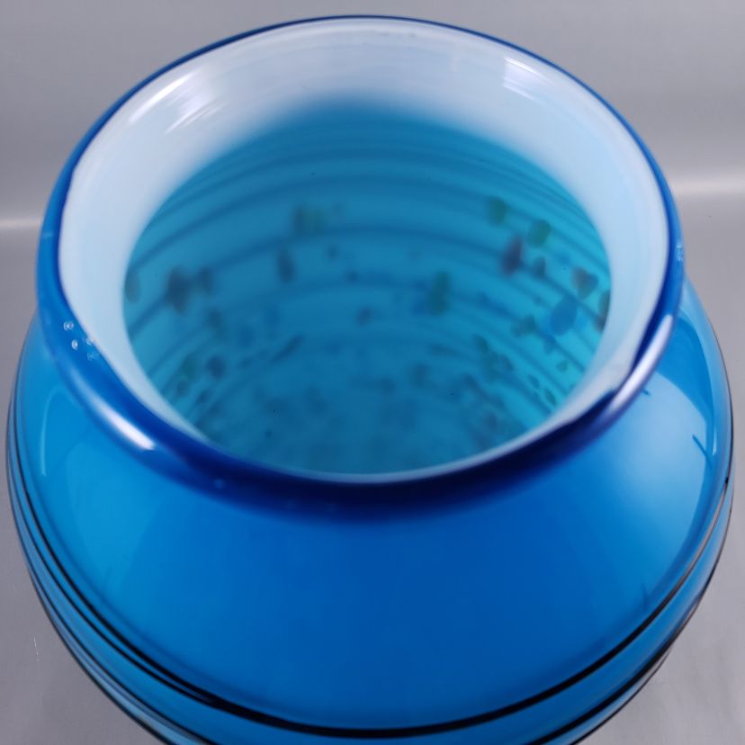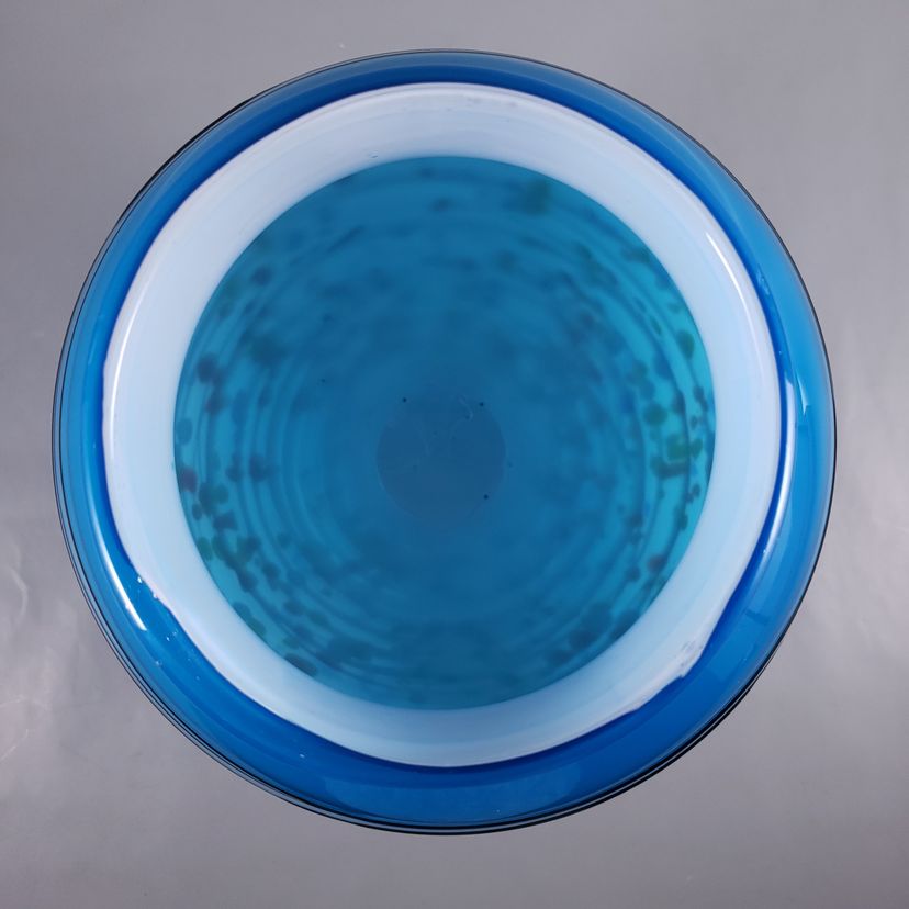 • Blue cased over white, thick glass