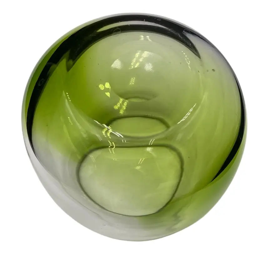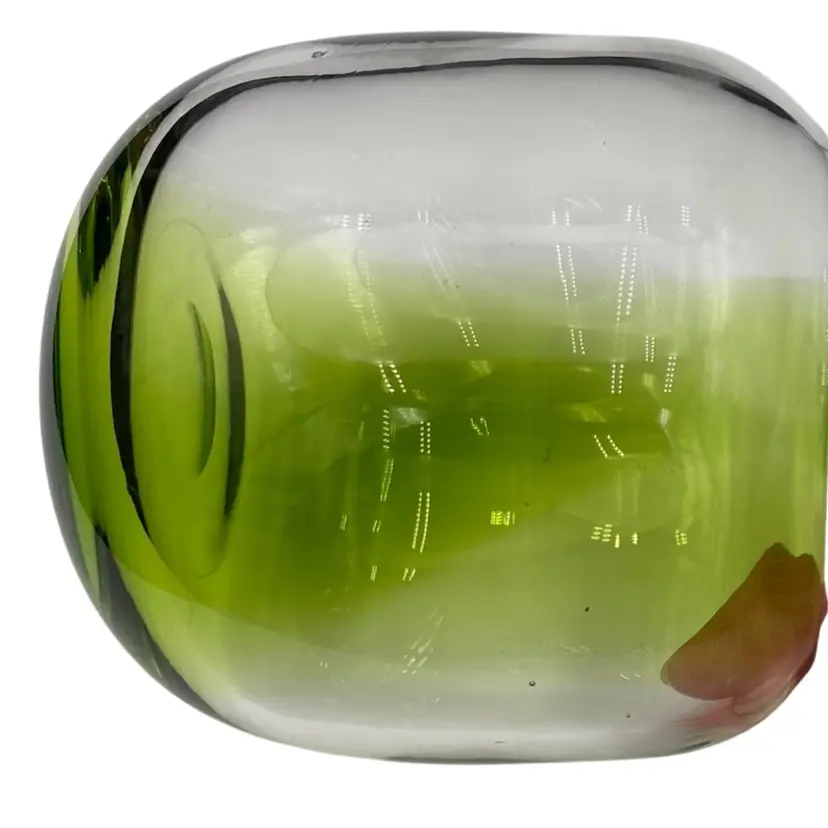 The glass vase is in excellent condition. There are no chips, cracks or signs of wear. As with most blown glass, there are a few air bubbles.
