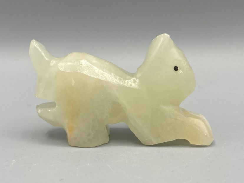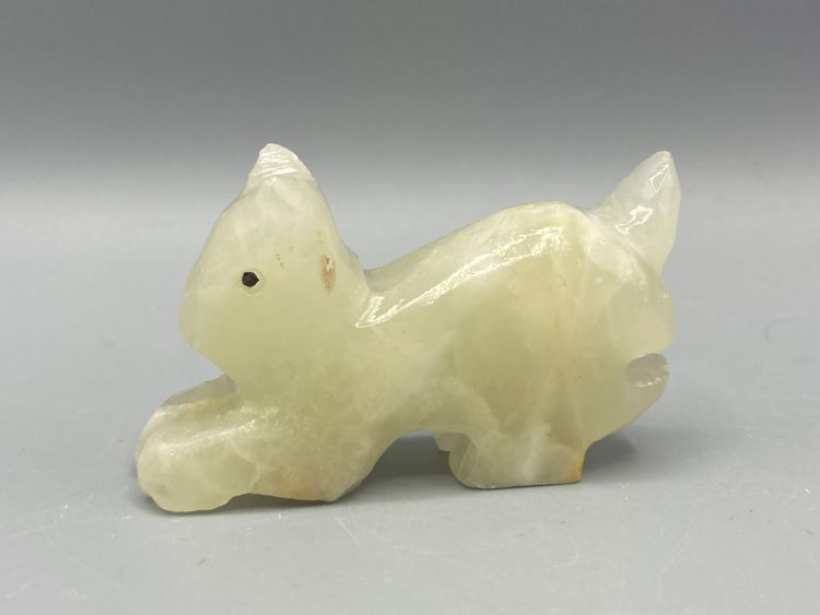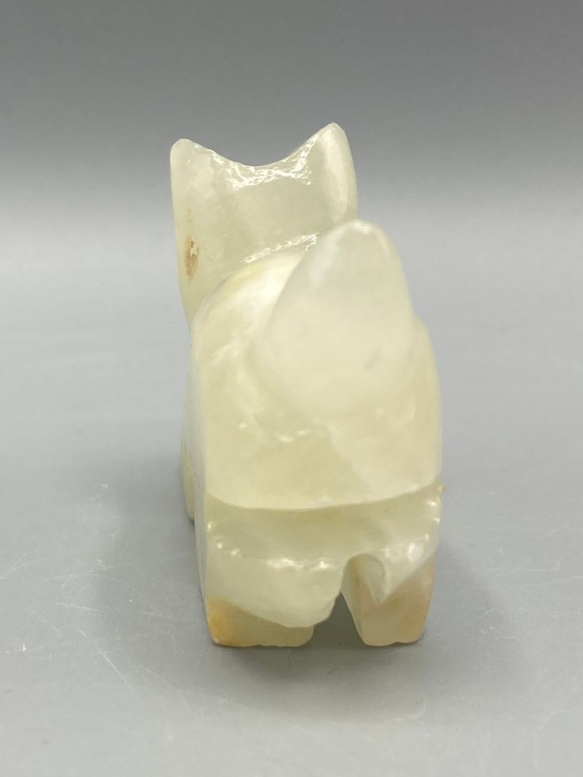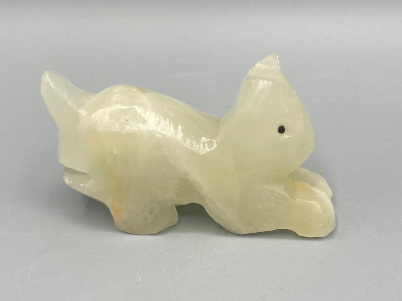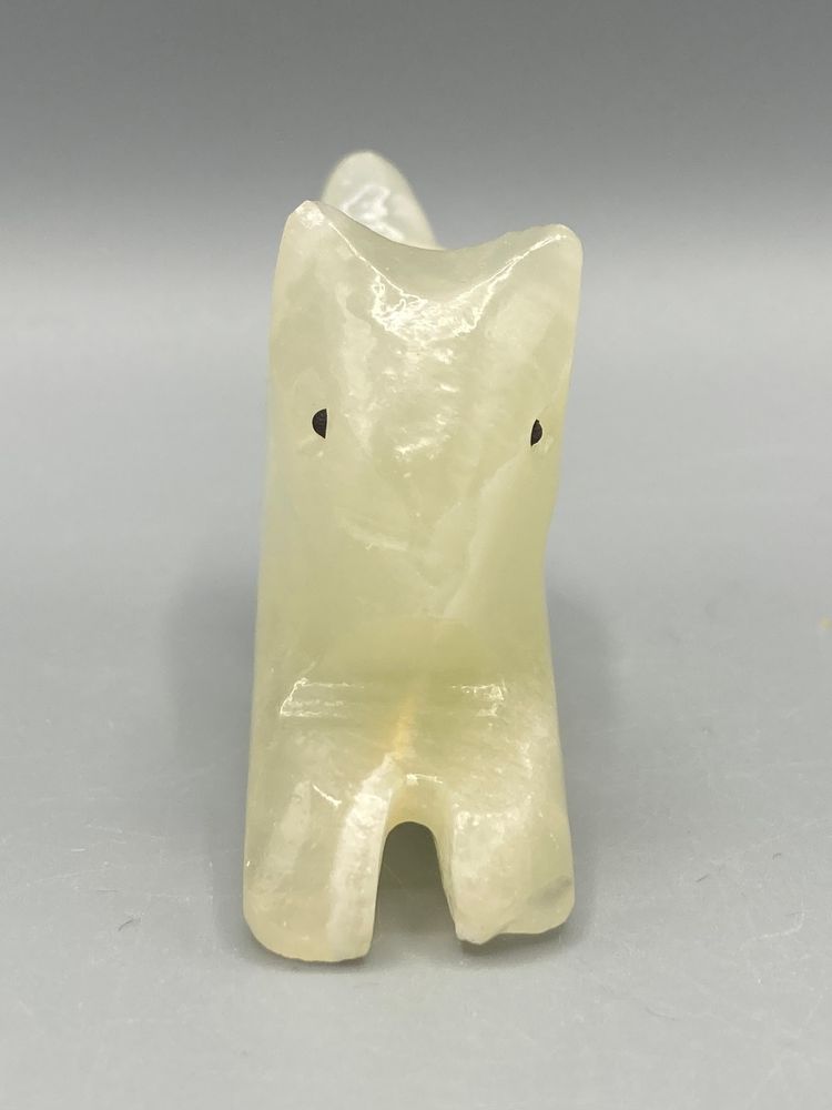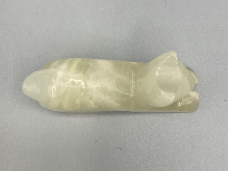 This stone cat is in good condition. It measrues approximately 1 1/2" tall x 2 3/4" x 3/4".