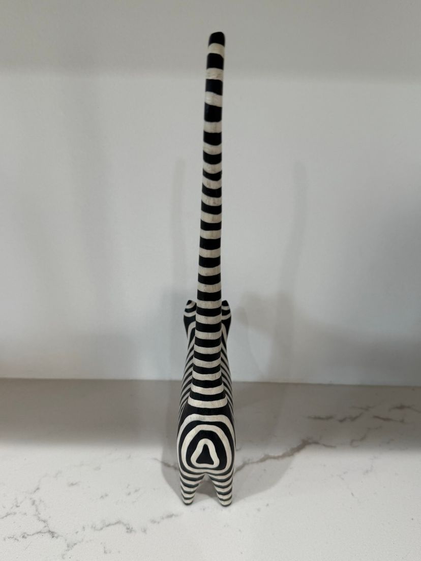 Whoa dude! This cat striped is very cool especially if you love the fun long tailed artsy cats!