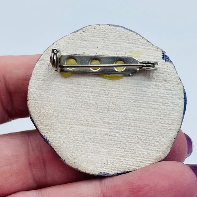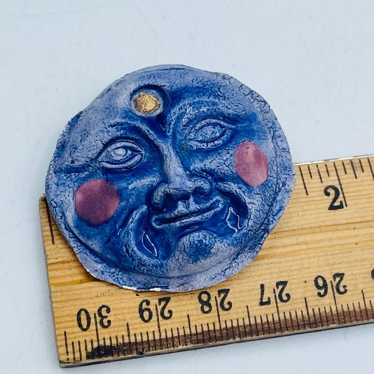 Interesting Moon Face pin- appears to be plaster. Preowned condition. See all images for more info and details.