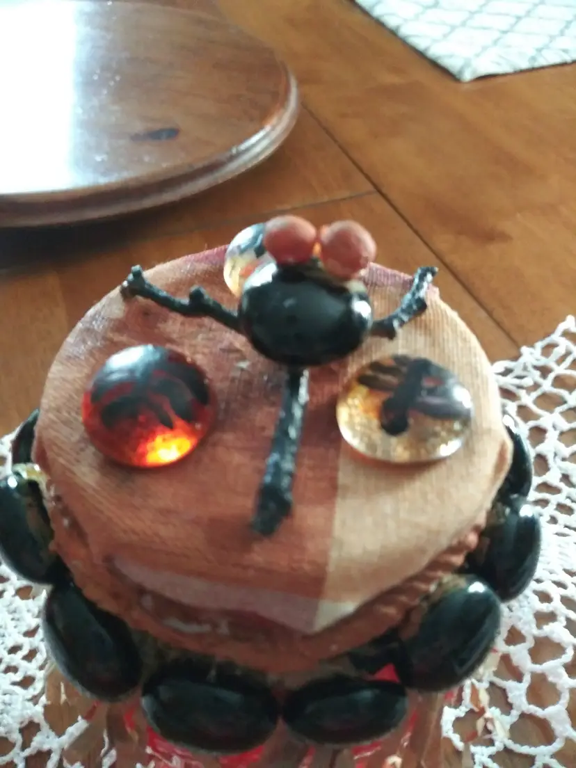 Glass Mason Jar, with jute bow, & and little stones can be used for tea light