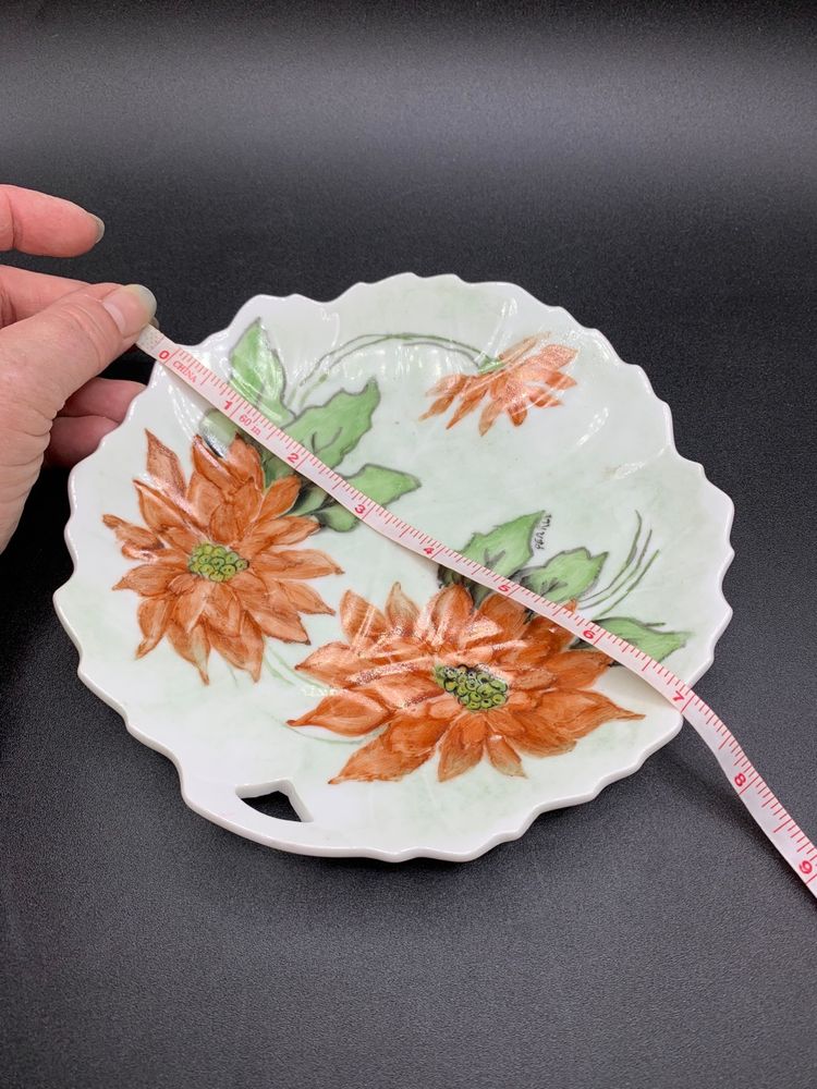 This stunning plate is a one-of-a-kind piece, perfect for any Christmas collector. Handmade and painted with exquisite detail, this plate features beautiful poinsettias and is signed by the artist Pearle in 1956. The plate is made of high-quality bone china, ensuring its longevity and beauty for years to come.