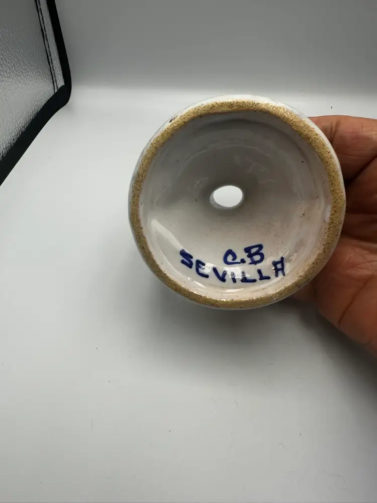 The 3 inch tall piece is made of earthenware