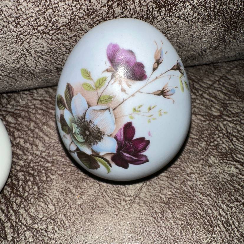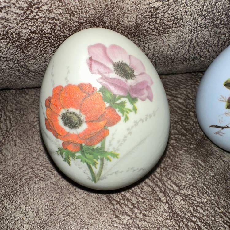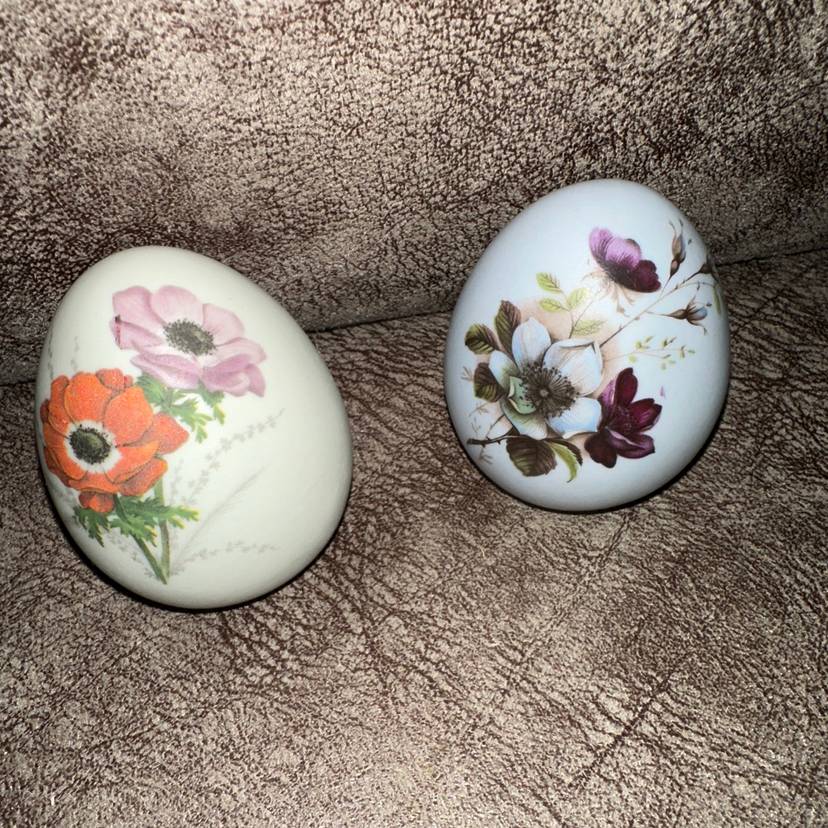 Hand painted Floral Ceramic Eggs Set of 2 One Green One Blue. Perfect for all seasons.