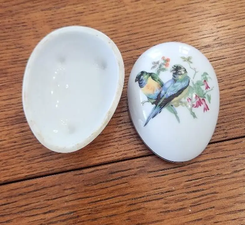 Hand painted Porcelain Egg shaped trinket box