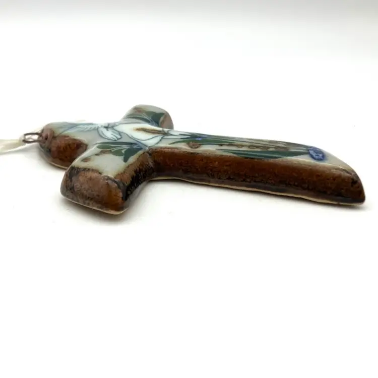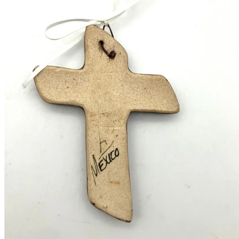 Measures 4.5” x 3.25” x 0.5”. Has hanging wire and decorative ribbon. Excellent condition.