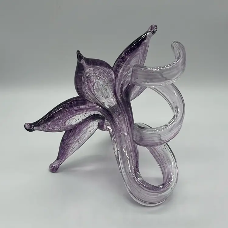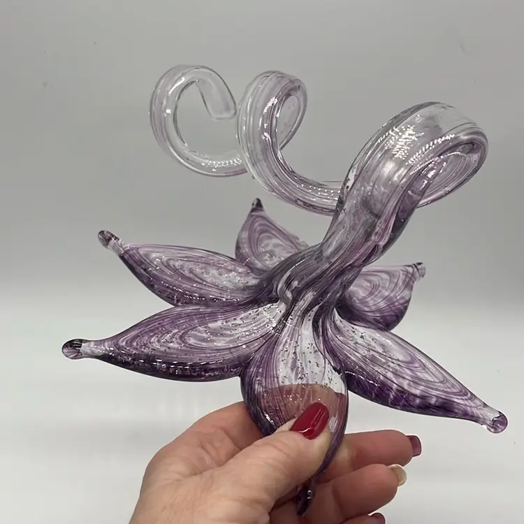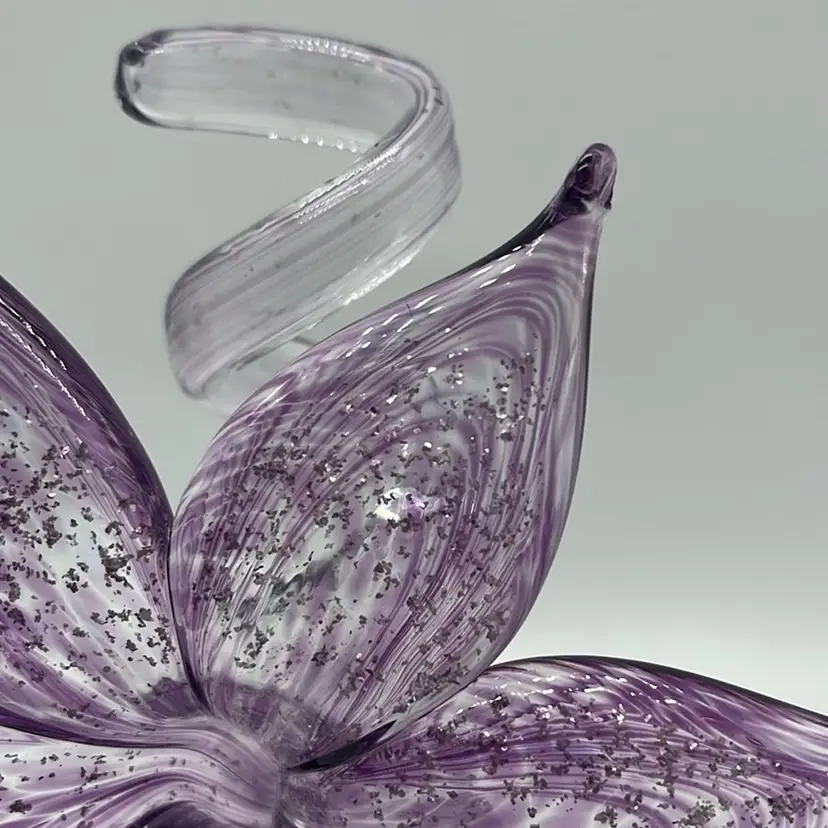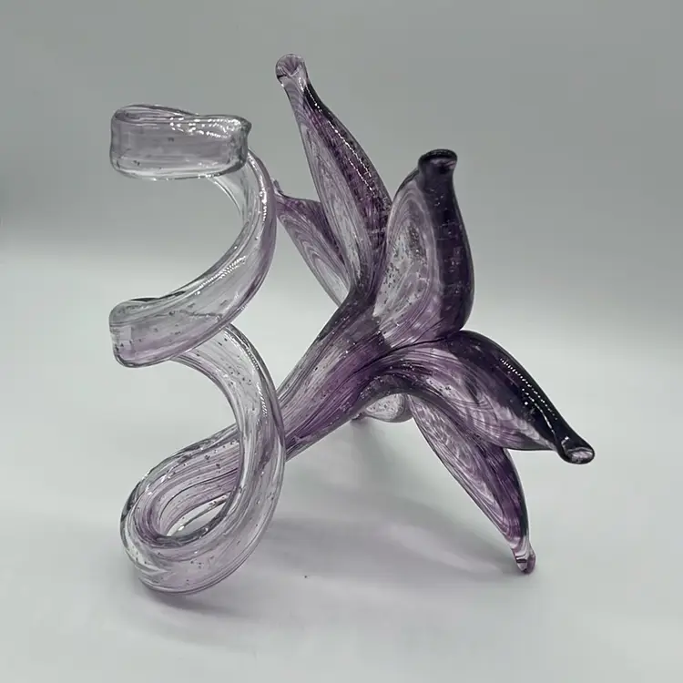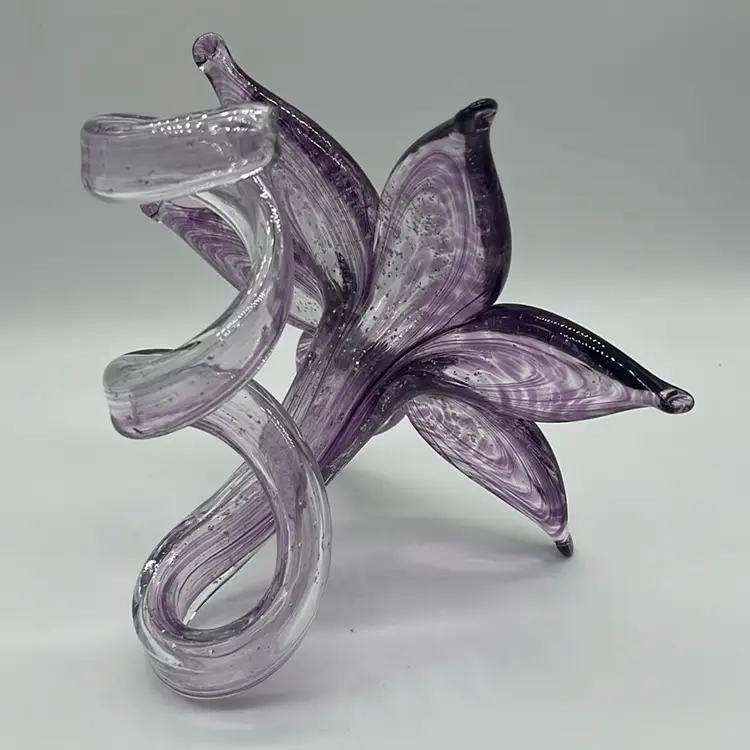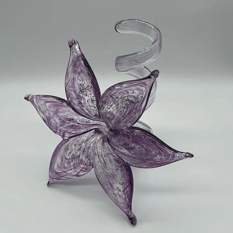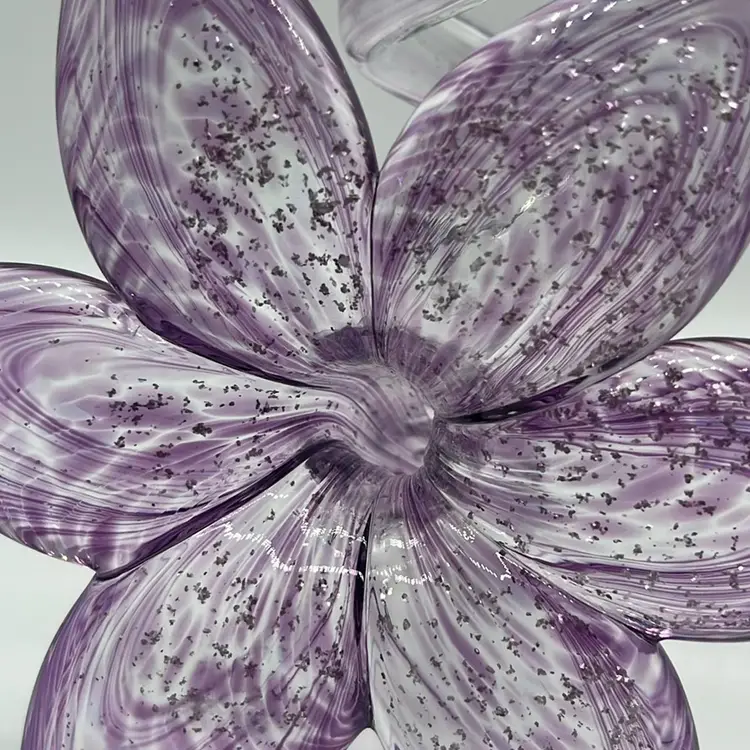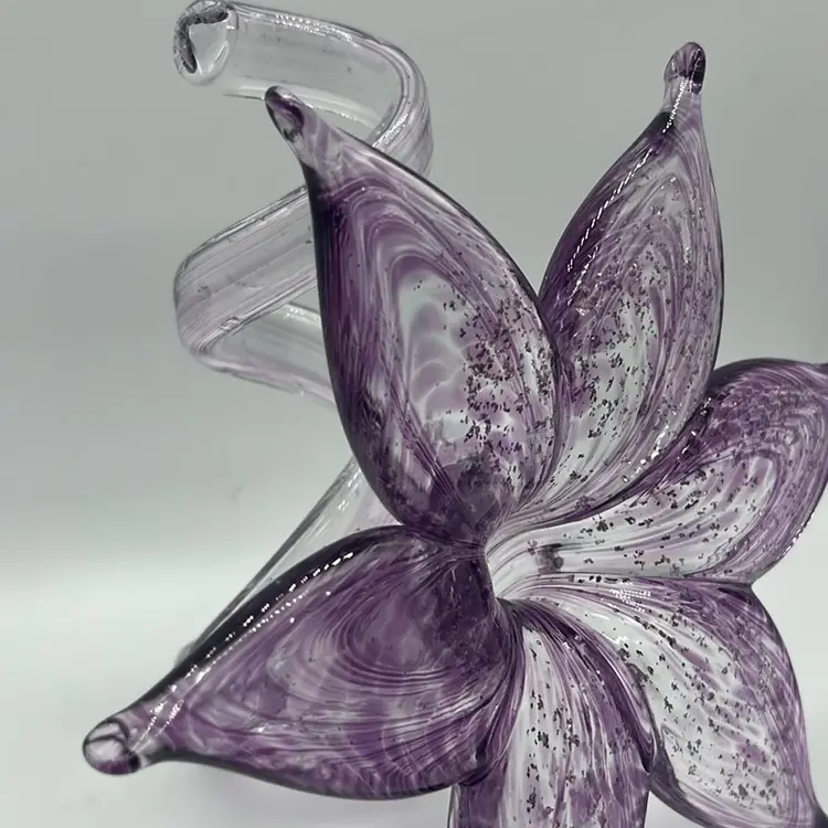Handblown Art Glass Purple Glitter Flower w/ Swirled Stem | 6”