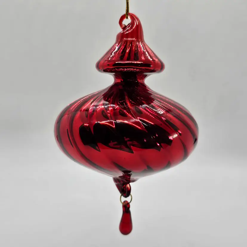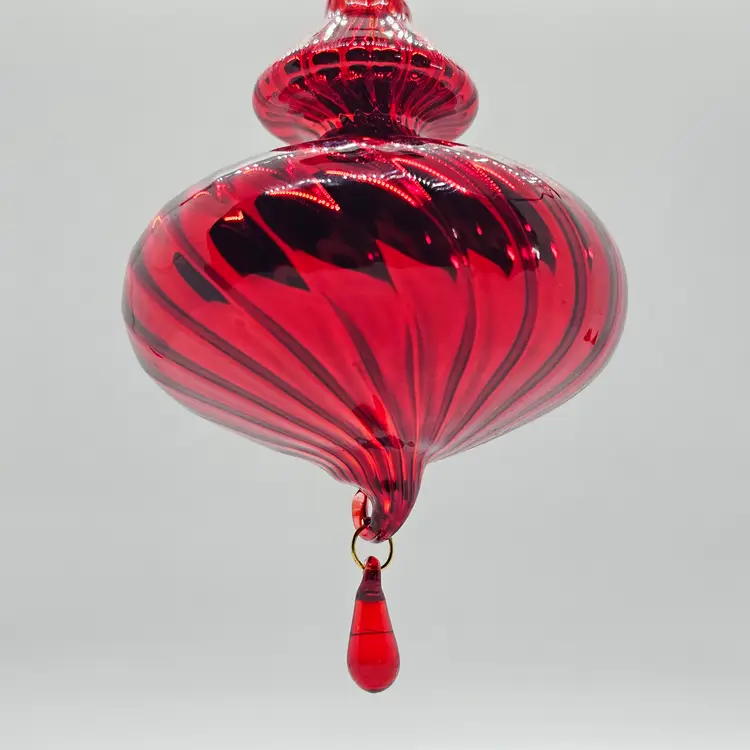This handblown glass ruby red finial holiday ornament is a stunning addition to any festive decor. It is perfect for adding a touch of elegance to your holiday season. The ruby glass material gives it a luxurious look, while the finial design adds a touch of charm. Enhance your collection of holiday ornaments with this beautiful and unique decoration.