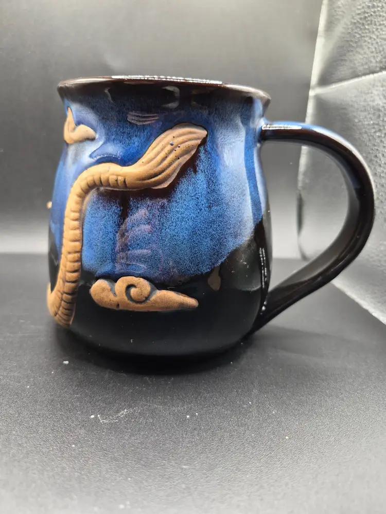Handcrafted Azul Pottery Dragon Mug Blue & Brown Ceramic Large Coffee Cup Heavy