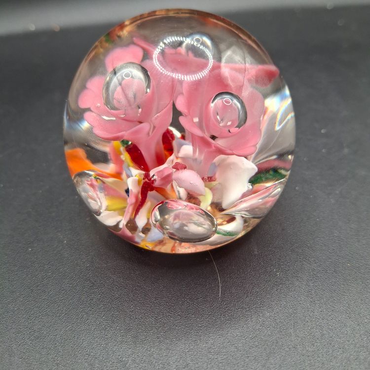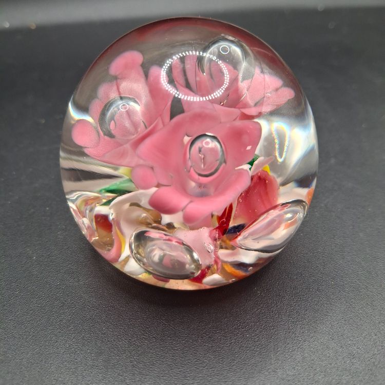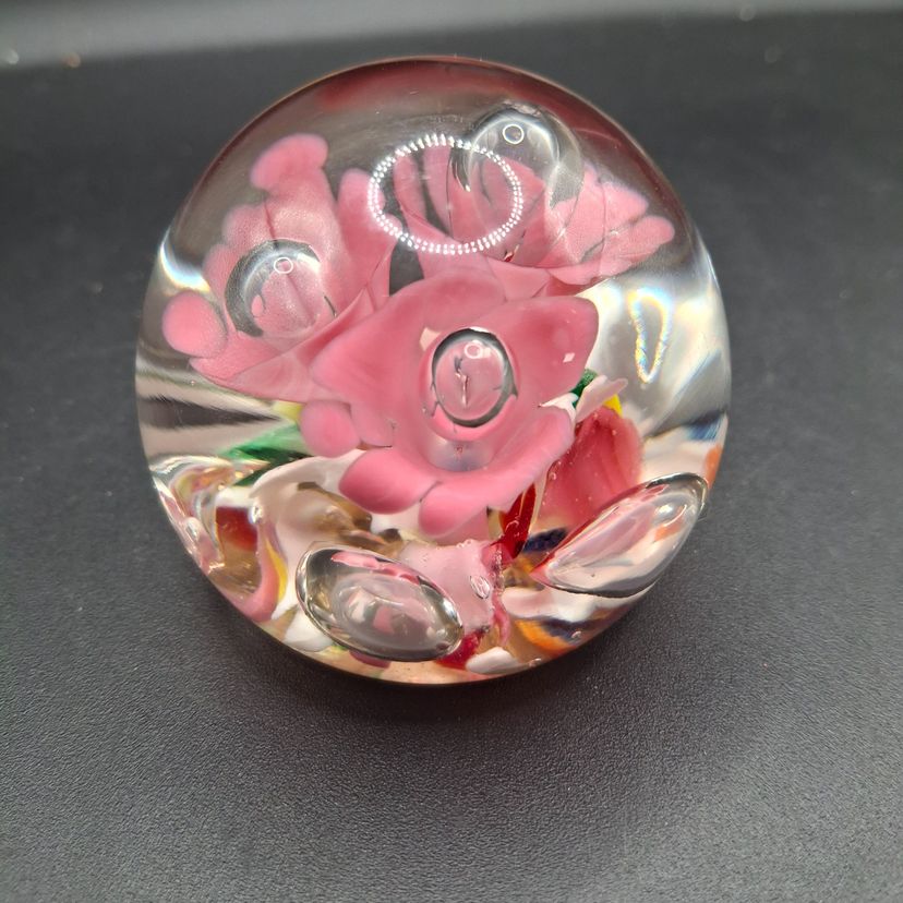 In a world where art meets function, this exquisite handcrafted glass paperweight stands as a testament to timeless beauty. The intricate floral design, encased within crystal-clear glass, captures nature's delicate allure and transforms it into an object of everyday elegance. Whether gracing your desk or adorning a shelf, it evokes a sense of wonder and tranquility.