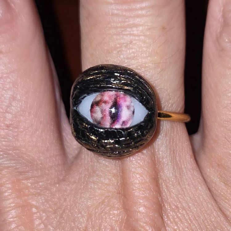 One-of-a-kind dragon eye ring β handmade from resin and polymer clay.