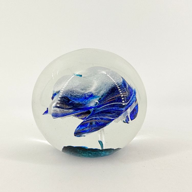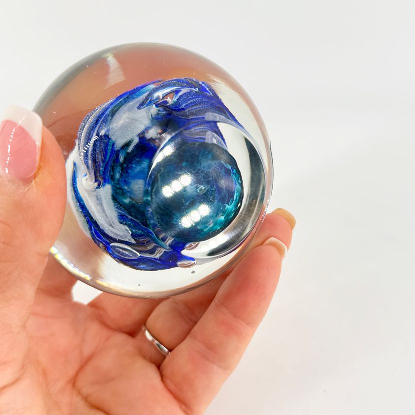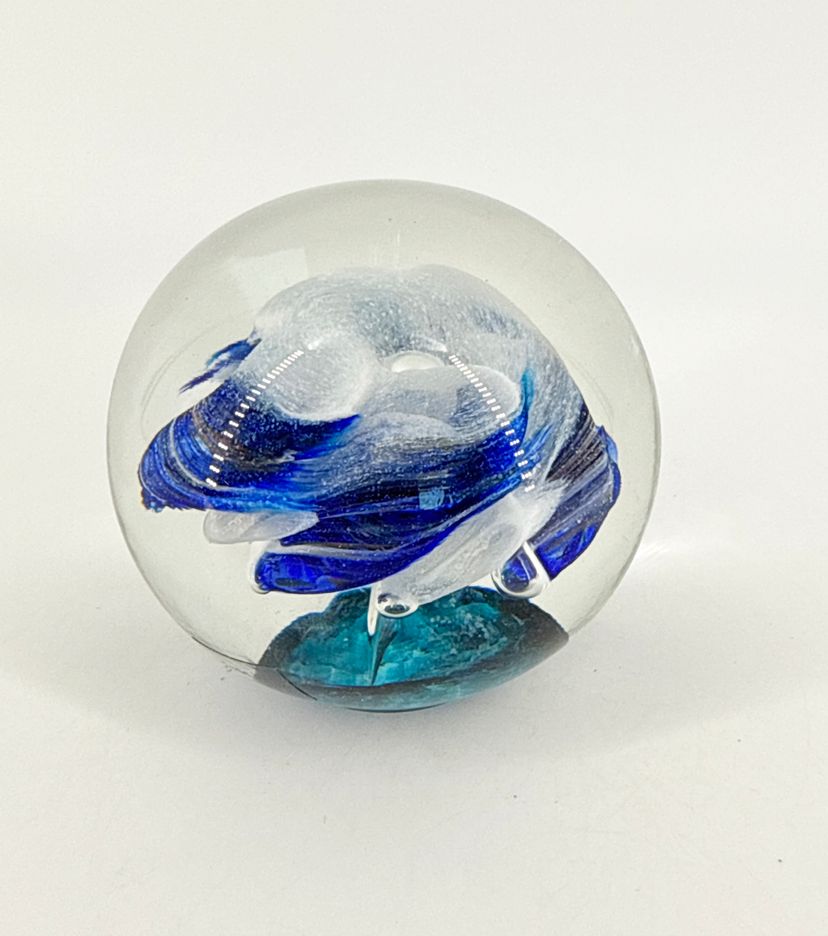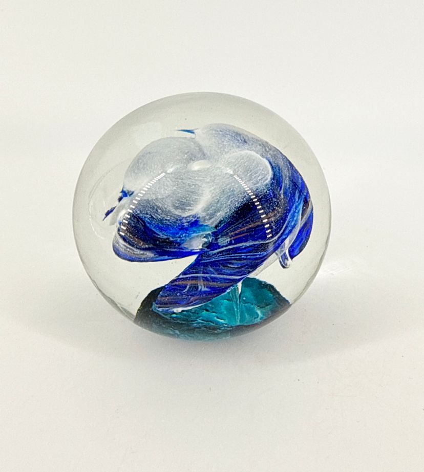 It is 2.5" tall and measures 3" in diameter at its widest. It is in excellent condition. There are no cracks, breaks, chips or repairs. (See photos).